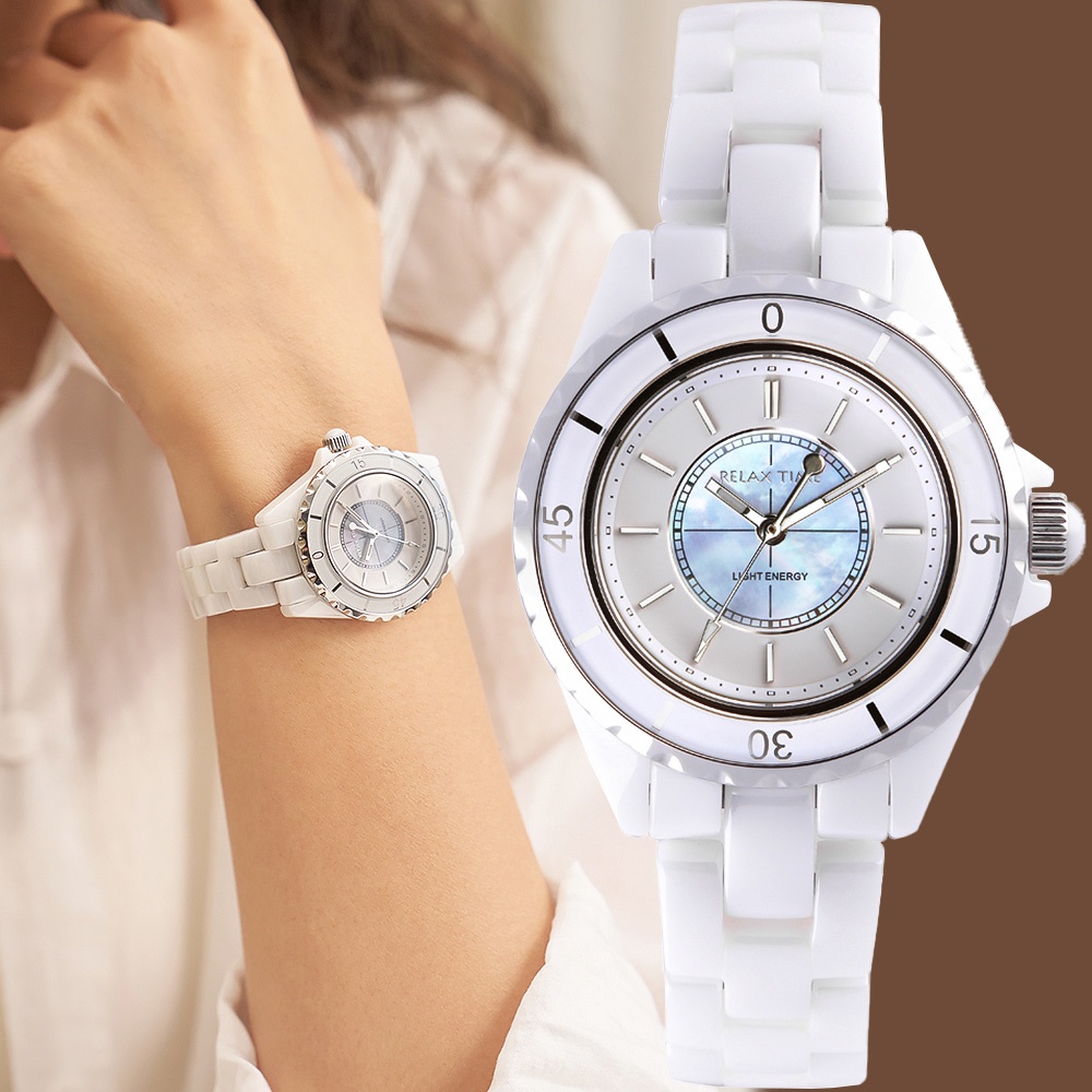 Relax Time 奢華陶瓷光動能女錶-34mm 禮物 RT-107S-1