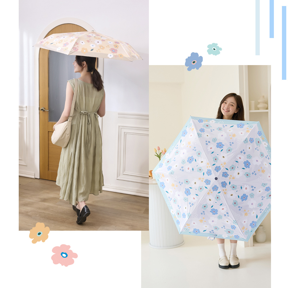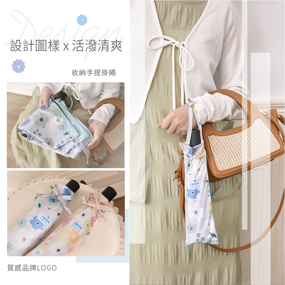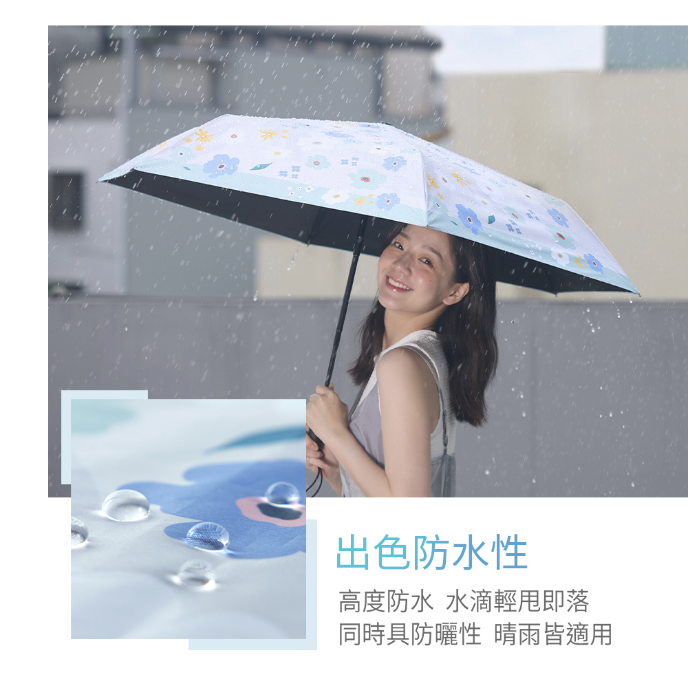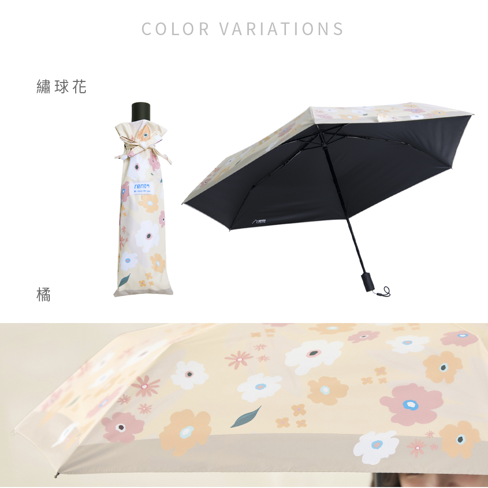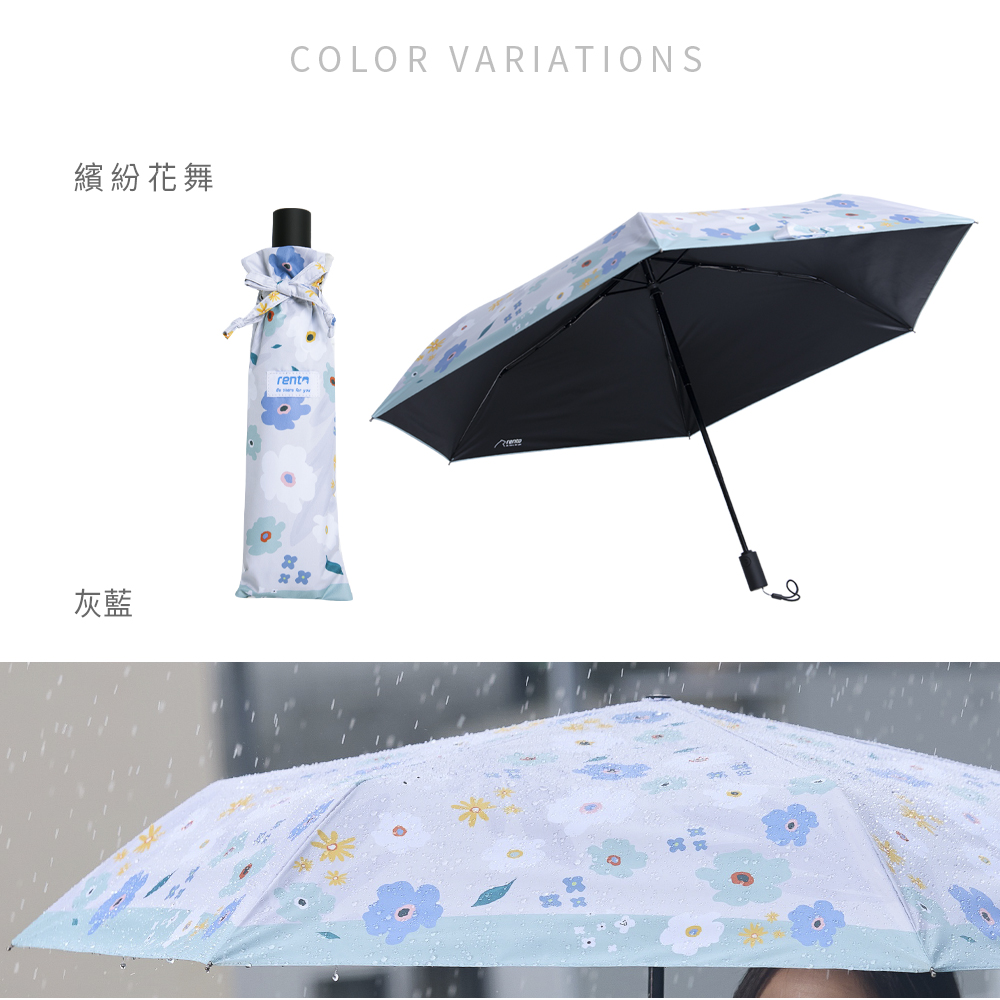 【rento】 防曬黑膠安全自動傘-繽紛花舞