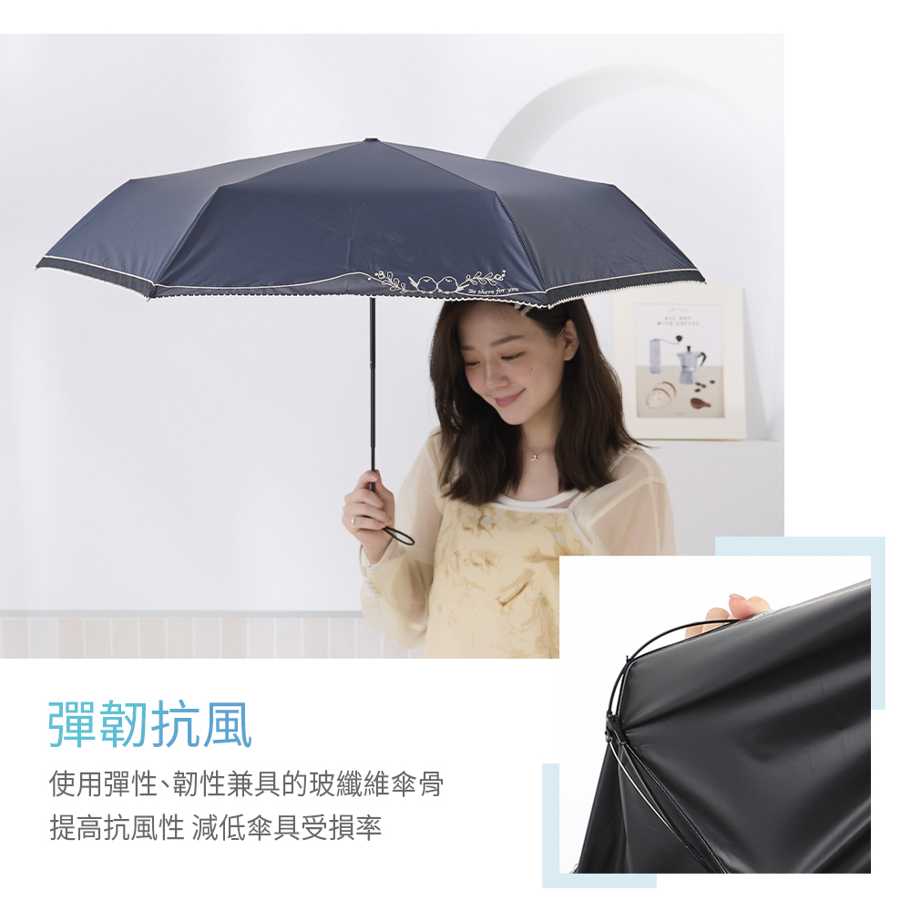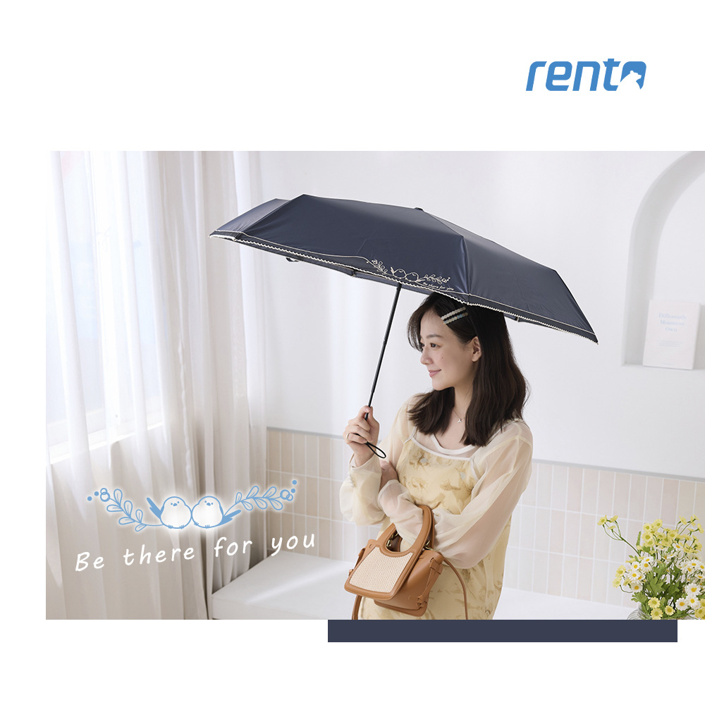 【rento】 防曬黑膠拼接迷你傘-刺繡山雀