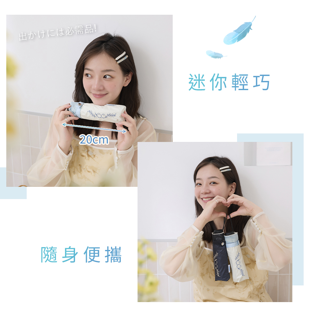 迷你輕盈,全天候使用隨身傘 ✔️精緻刺繡,細緻簡約 ✔️全遮光黑膠,可阻擋熱氣、紫外線 ✔️迷你尺寸,小包可容,輕盈無負擔