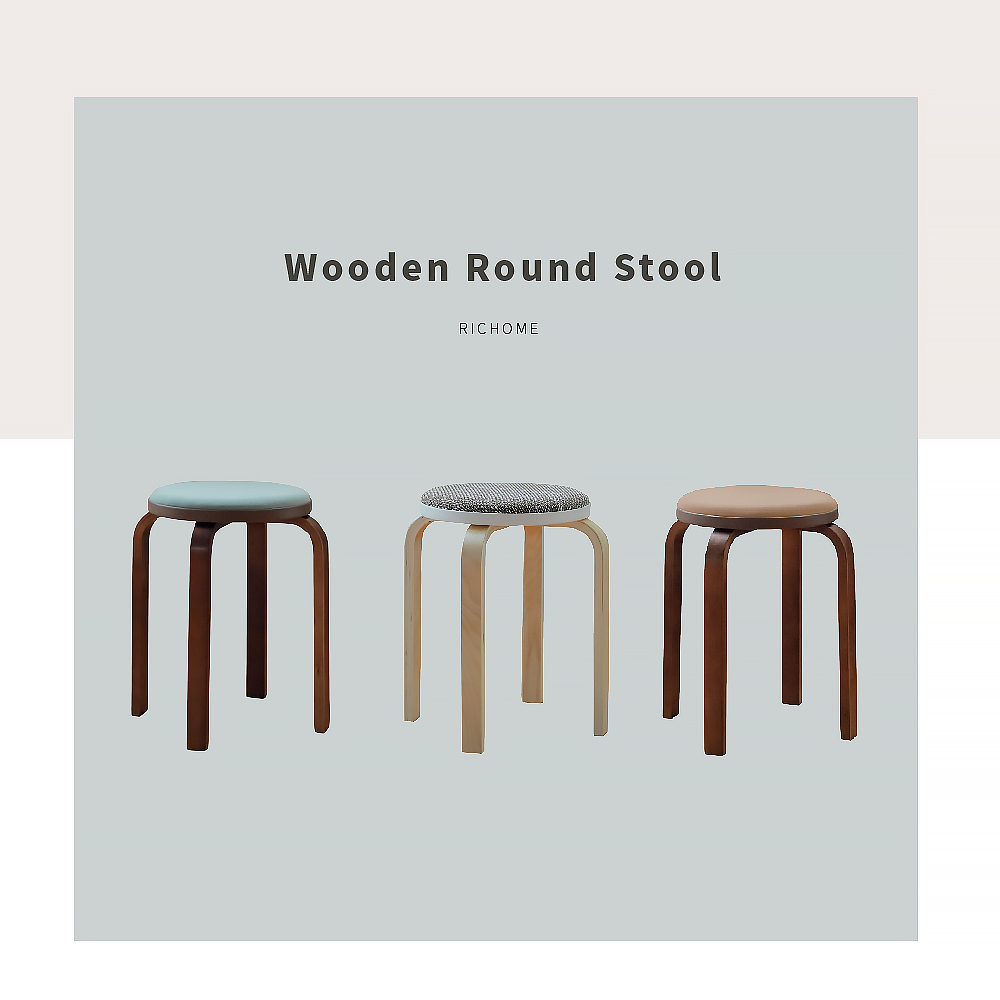 RICHOME曲木凳-灰色<DIY組裝商品>