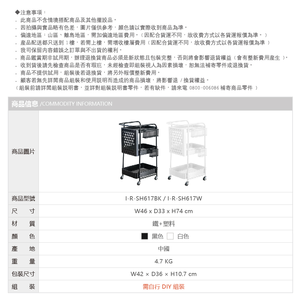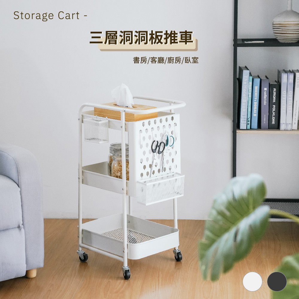 RICHOME三層洞洞板收納推車-白<DIY組裝商品>