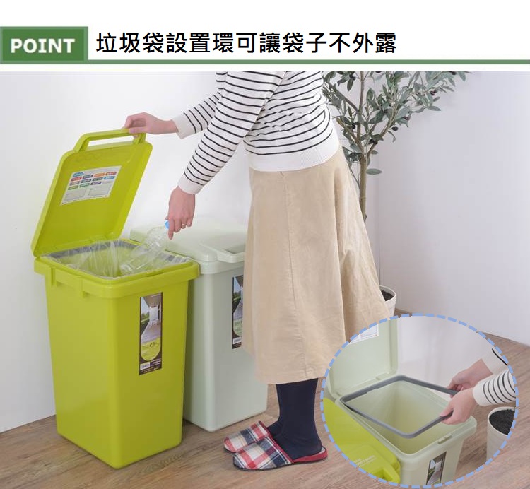 ●內附雙向固定環,可選擇套入一大垃圾袋或是依需求分類前後兩層使用