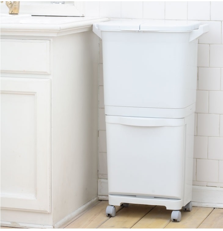 【this-this】日本RISU|H&H直立雙層分類附輪式垃圾桶(雙蓋) 45L
