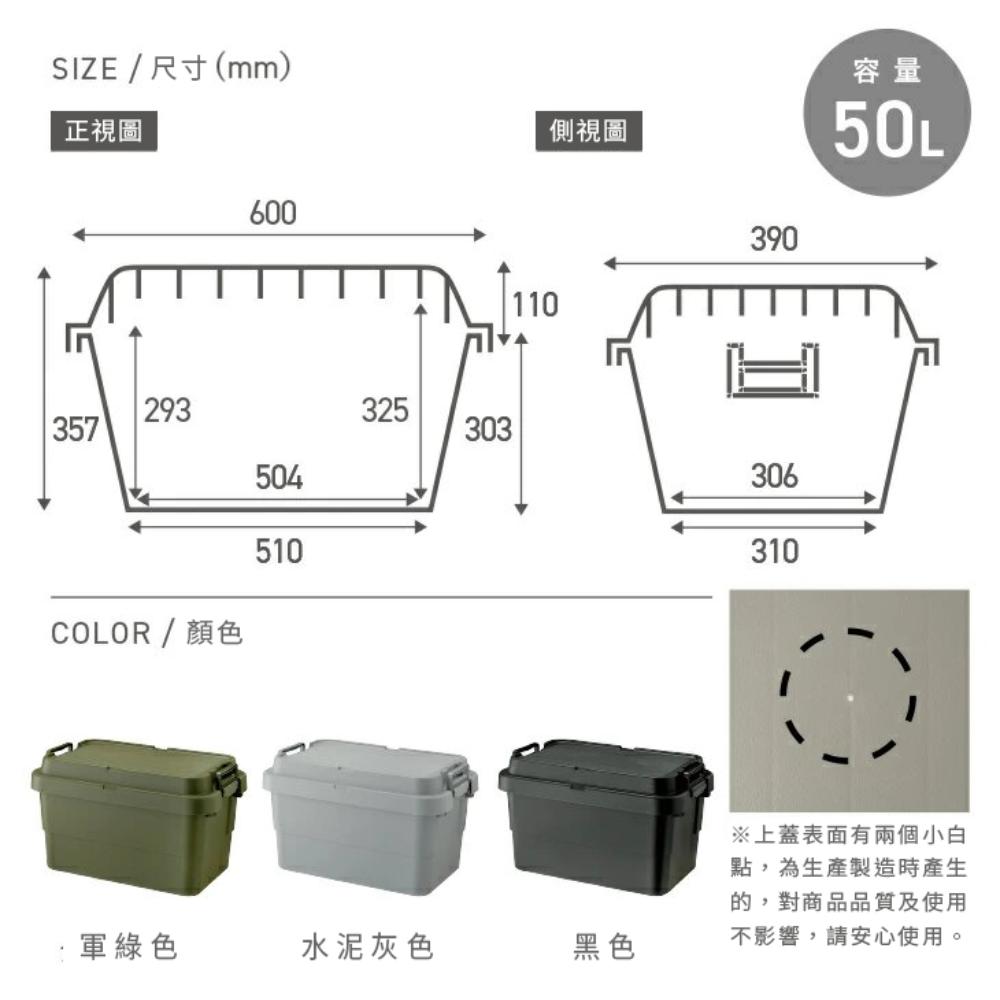 廣受好評的耐重收納箱 除了標準版的70L、50L、30L、20L針對不同需求,本次隆重推出50S-LOW容量為30L,但他是50L的矮款,可堆疊50L耐重一樣可達100公斤重,可坐可站立,非常適合收納快速拿取的物品同樣也有黑色、軍綠色、水泥灰色更多容量、更多選擇,讓您愛怎麼裝就怎麼裝,隨意搭配外觀尺寸:寬60 x 長39 x 高24(公分)內部尺寸:寬50.4 x 長30.5 x 高19.2(公分)材質:PP(聚丙烯)製品重量:2307g上部承受重量:約100kg容量:30公升 製造國:日本※本商品不含隔板,需另外購買