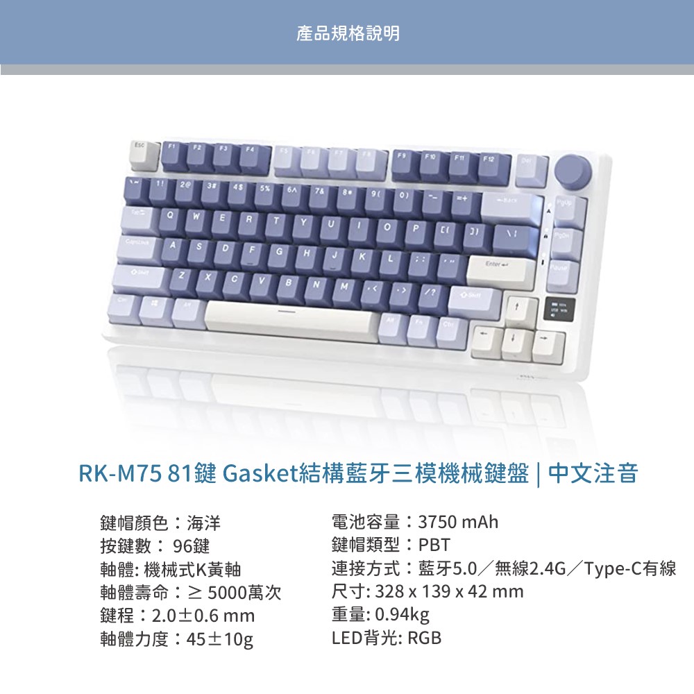 [樂維科技]RK M75 75% 藍牙三模無線機械鍵盤 K黃軸 RGB海洋|中文