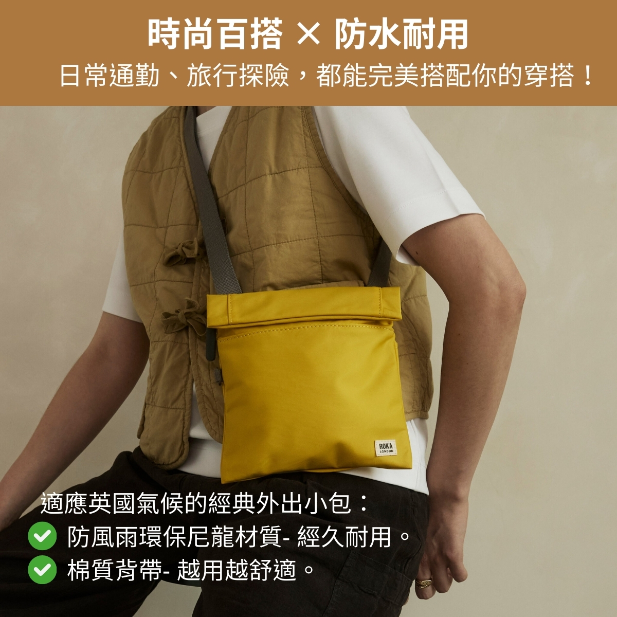 [英國 ROKA LONDON] 極簡風格 STRATFORD 捲蓋防盜隨身側背包- 粟黃