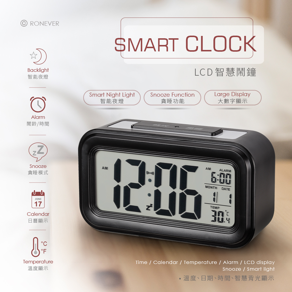 [RONEVER] LCD智慧鬧鐘 CK007 白