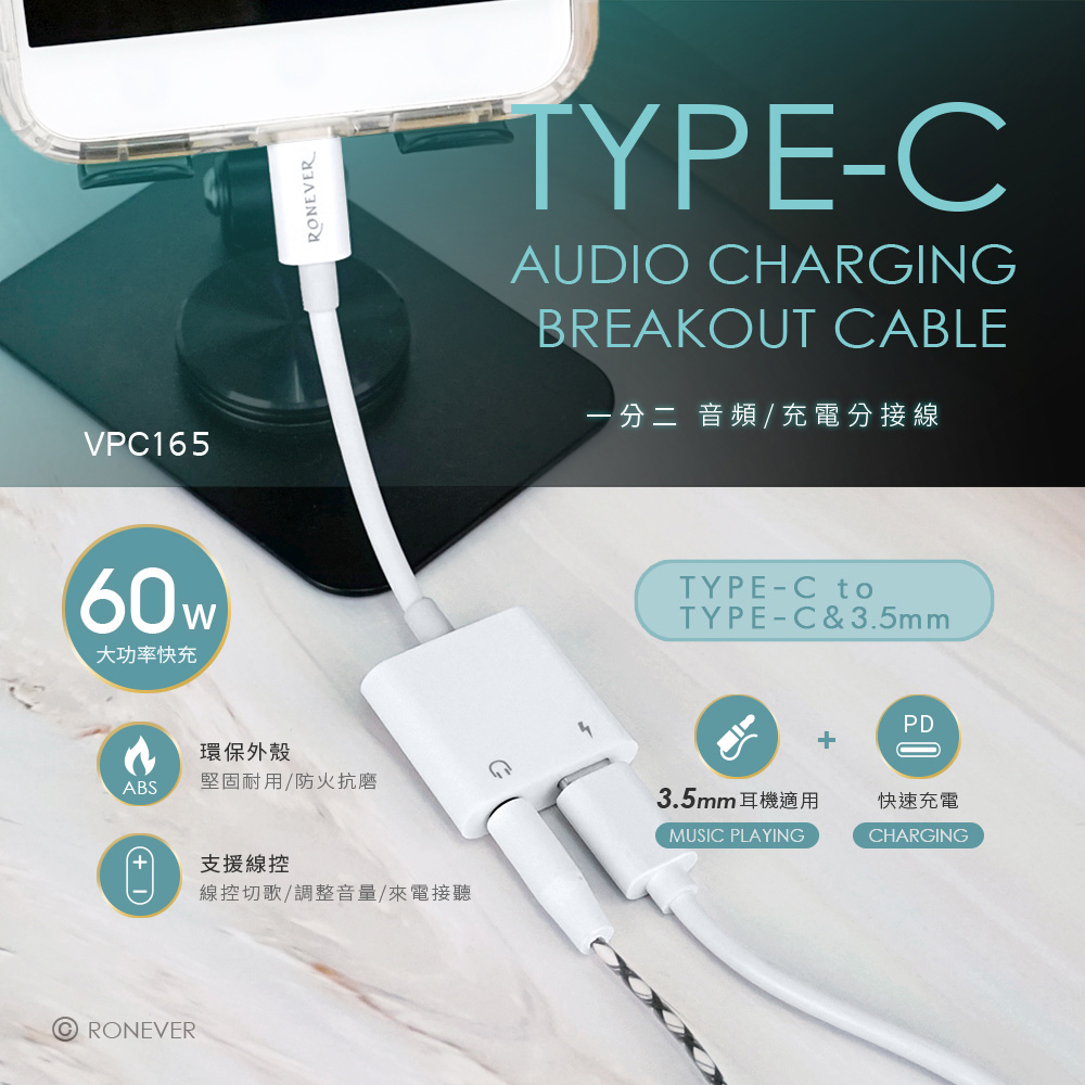 [RONEVER] TYPE-C音頻充電分接線 VPC165