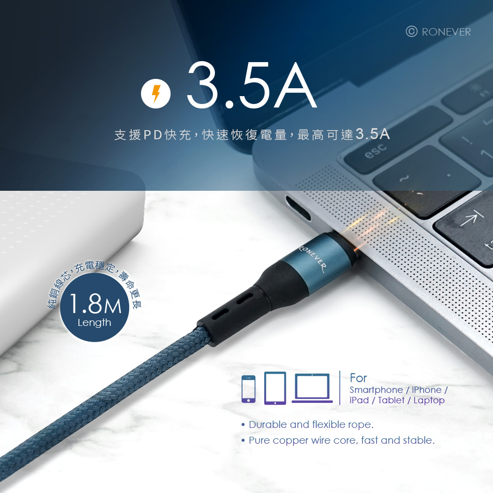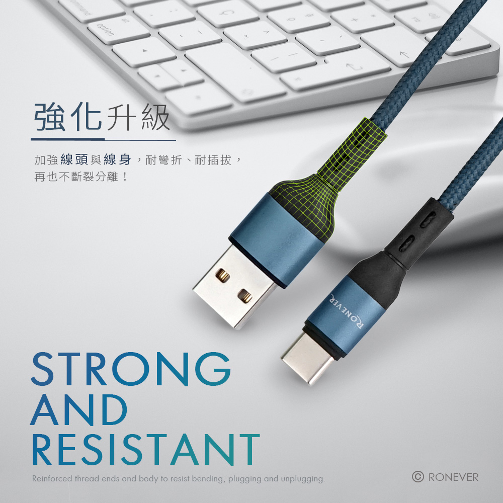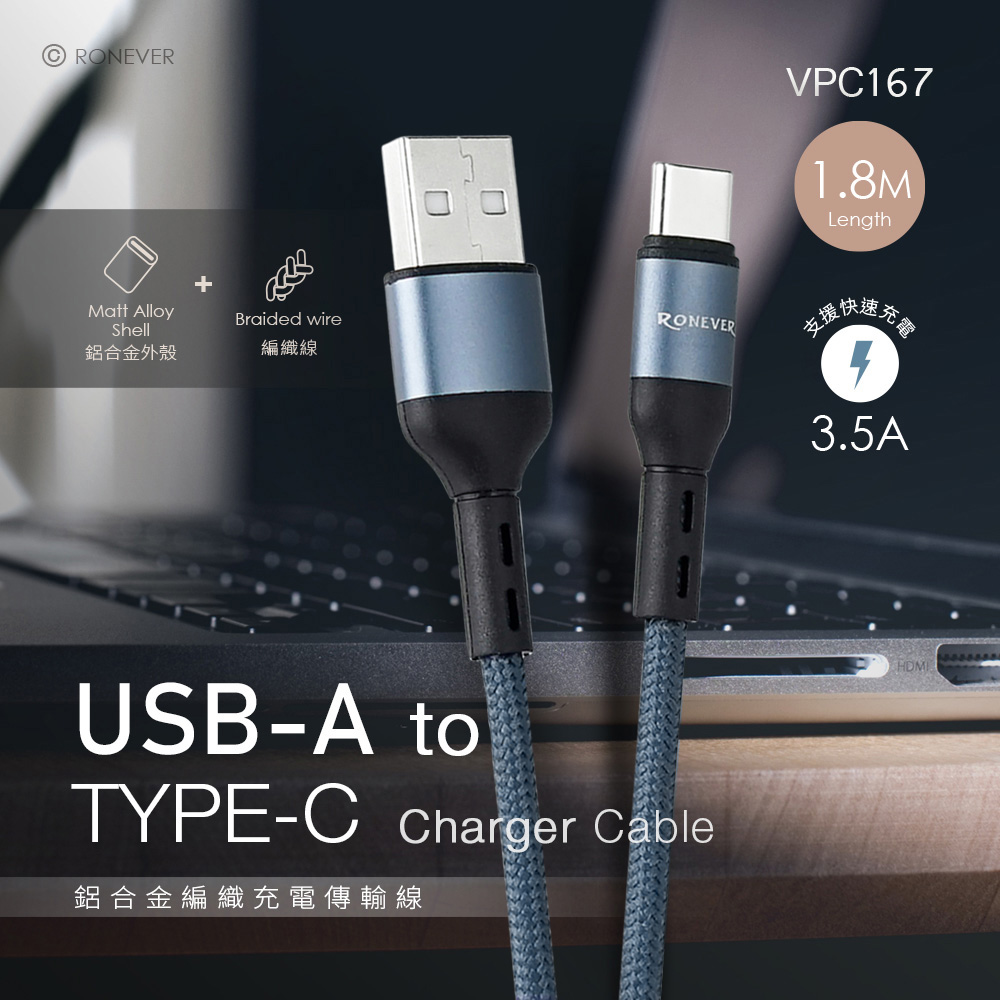 [RONEVER] USB-A to TYPE-C 鋁合金編織充電線(TYPE-C) VPC167