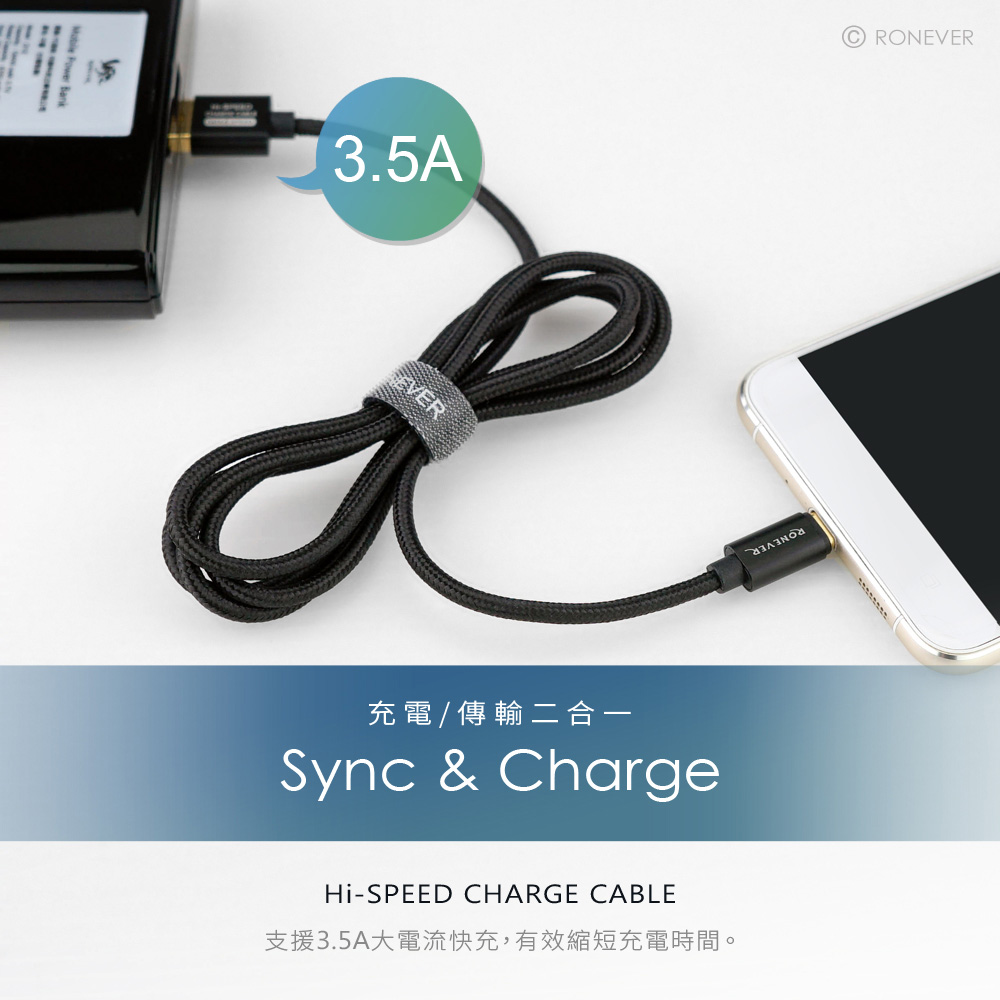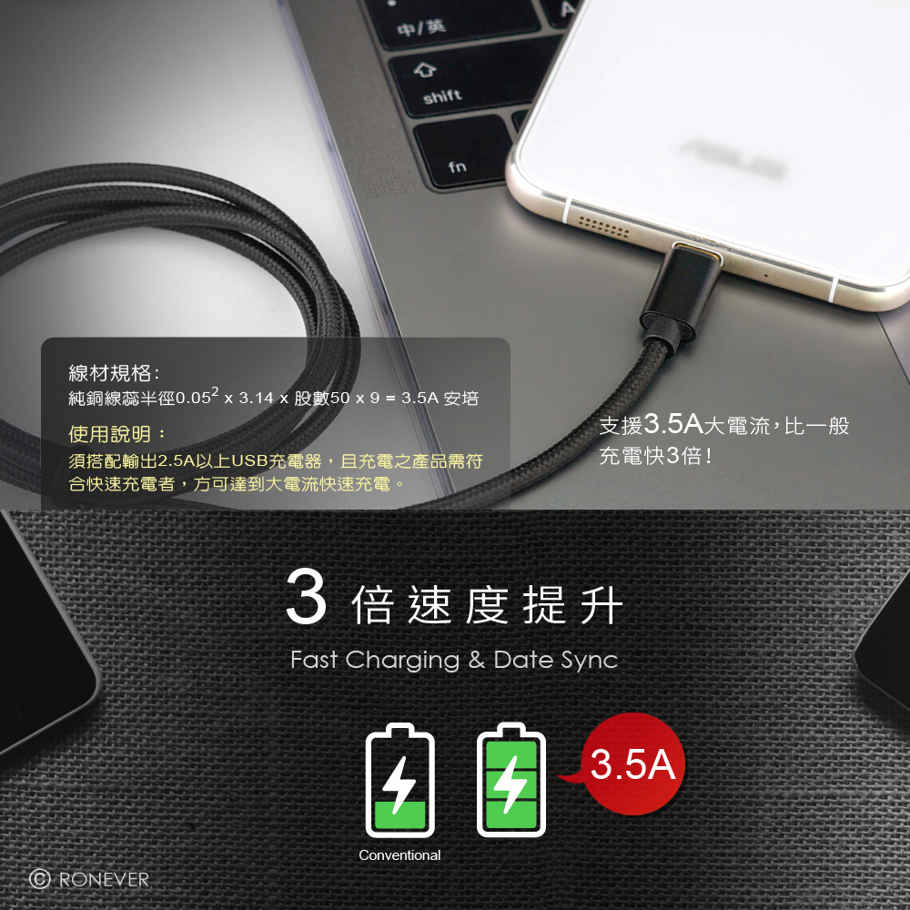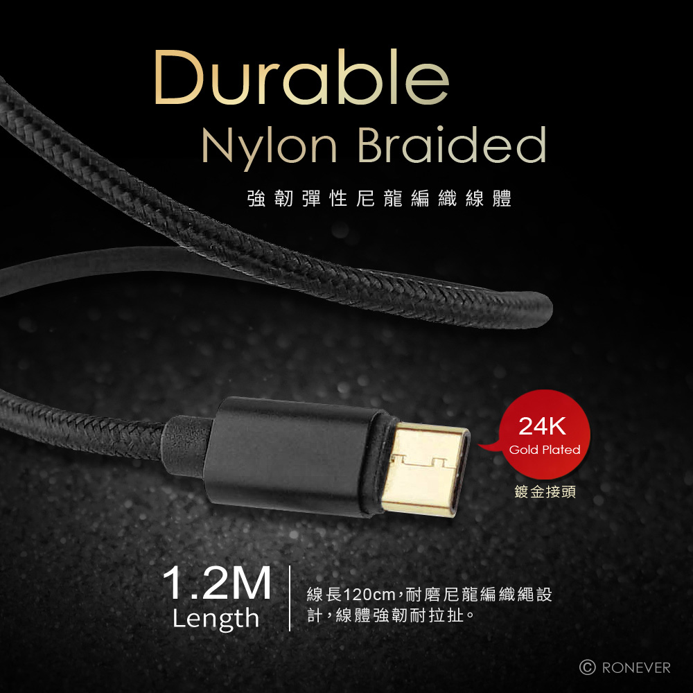 [RONEVER] 鋁合金尼龍編織充電線(TYPE-C) VPC119 灰