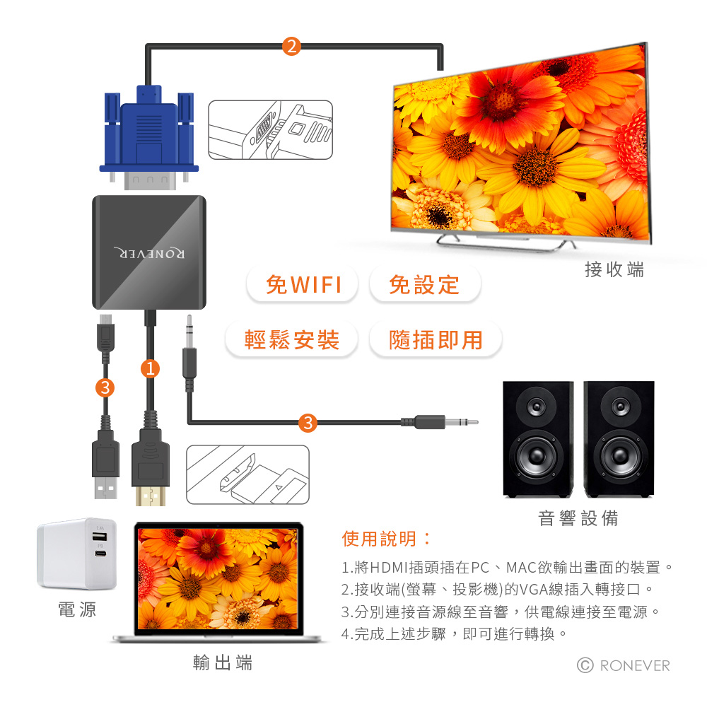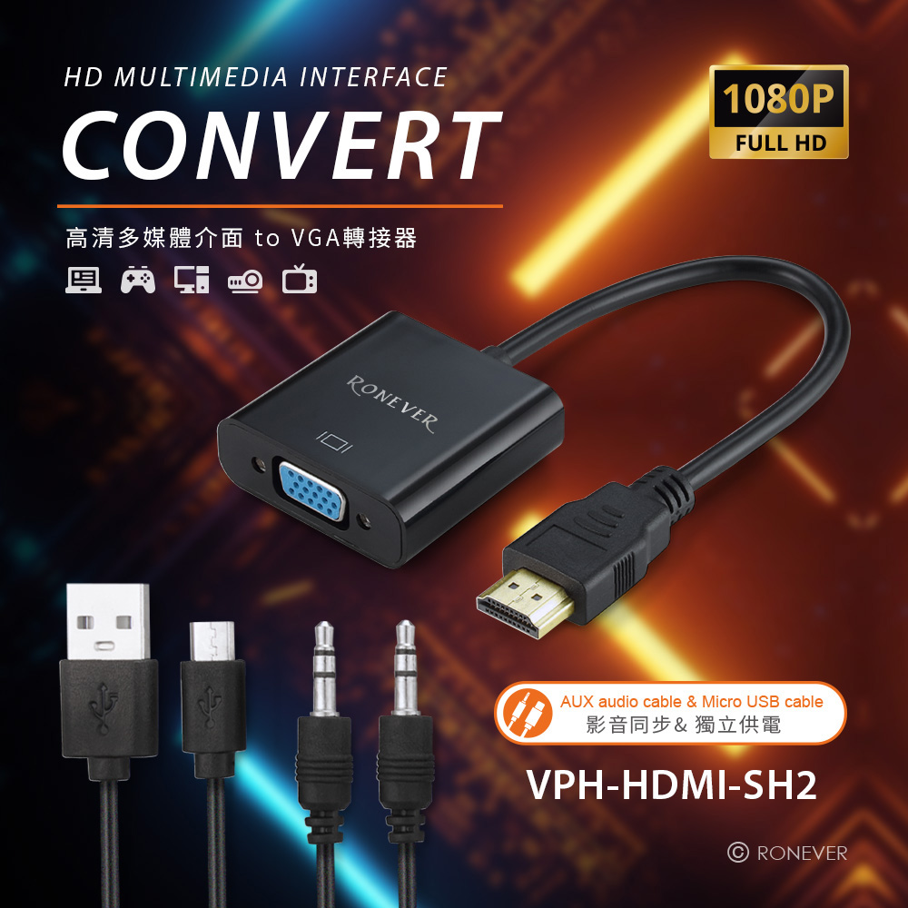 [RONEVER] 高清多媒體介面to VGA轉接器 VPH-HDMI-SH2