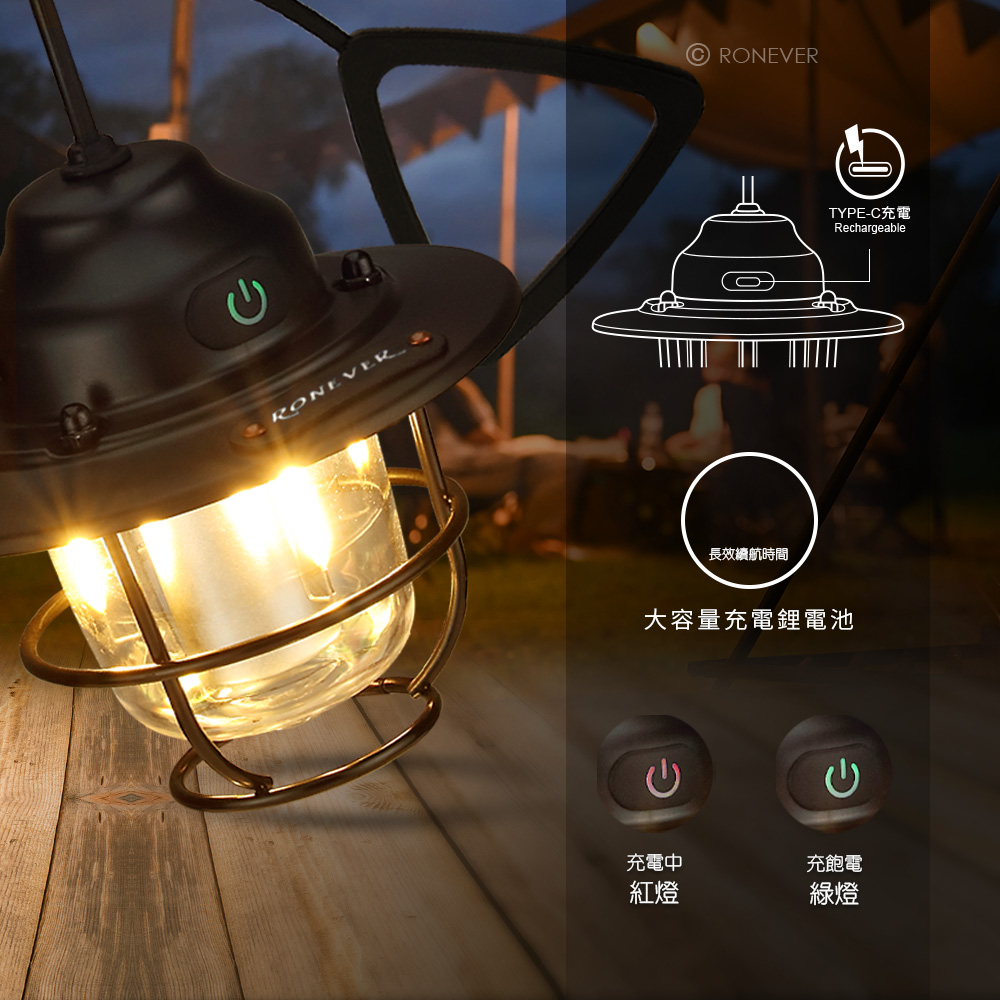 • 採用TYPE-C介面,內建充電鋰電池,長效續航時間。• 小巧燈籠造型,彈性矽膠掛繩設計,方便吊掛擺放。• 內建2700~6500K色溫,無級調光按鈕,可依環境調整暖、白光色。• IPX4生活性防水,在雨中可正常使用。(不可潛水使用)額定電壓:DC 5V/1A充電介面:TYPE-C亮度流明:220燈光色溫:2700-6500K重 量:140g內建電池:18650鋰電池 2200mAh產品材質:金屬+電子材料+塑膠+矽膠掛繩長度:160mm 產品尺寸:104x104x93mm包裝內容:露營燈x1、說明書x1、充電線x1