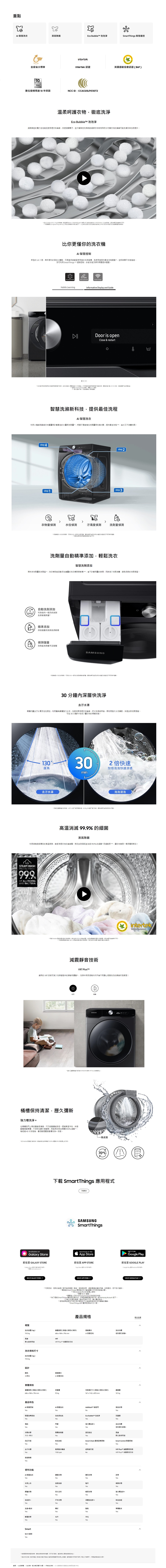 【SAMSUNG 三星】19公斤 滾筒式洗衣機 WF19T6500GW(此商品需 3~4 週備貨期,下單前請自行評估)