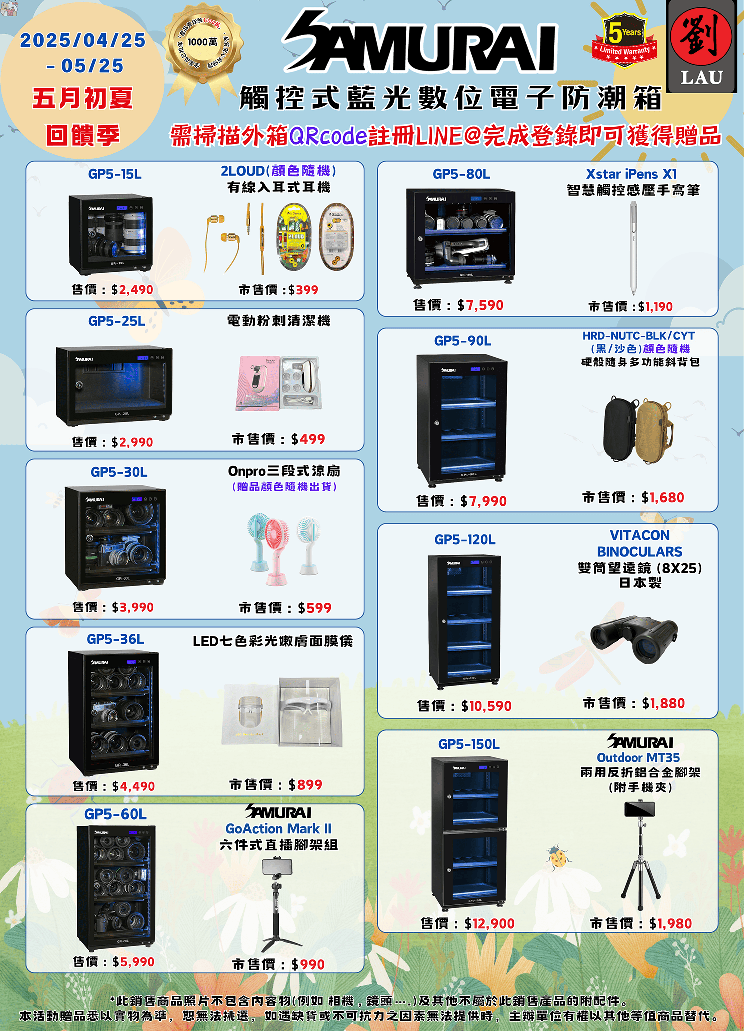 SAMURAI GP5-25L 觸碰式設定液晶顯示器電子防潮箱 特點 :