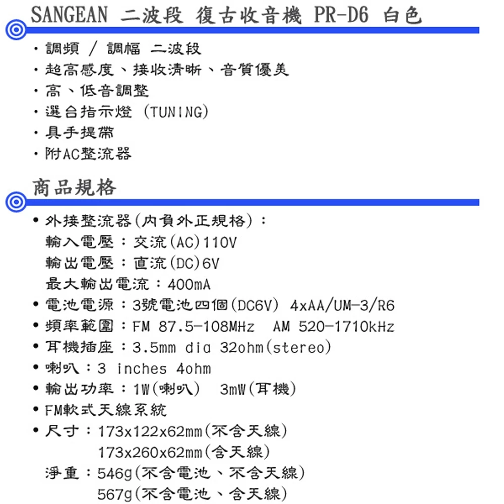 SANGEAN 山進 二波段 復古收音機 PR-D6