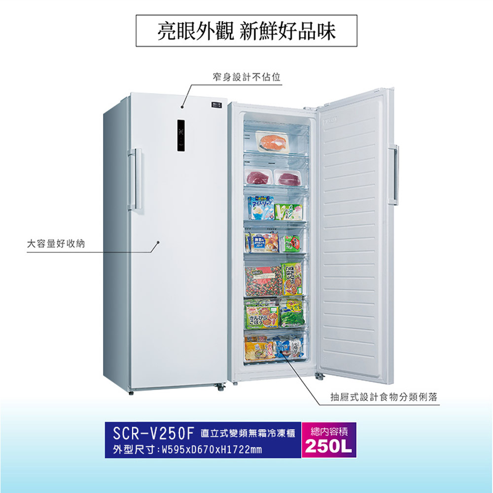 SANLUX 台灣三洋250公升變頻無霜直立式冷凍櫃SCR-V250F
