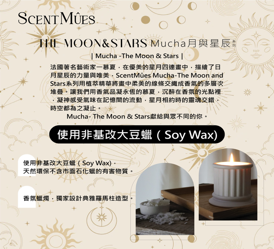 【ScentMûes森繆斯】月與星辰 Mucha晨星 精油香氛大豆蠟燭150g (清新柑苔調)