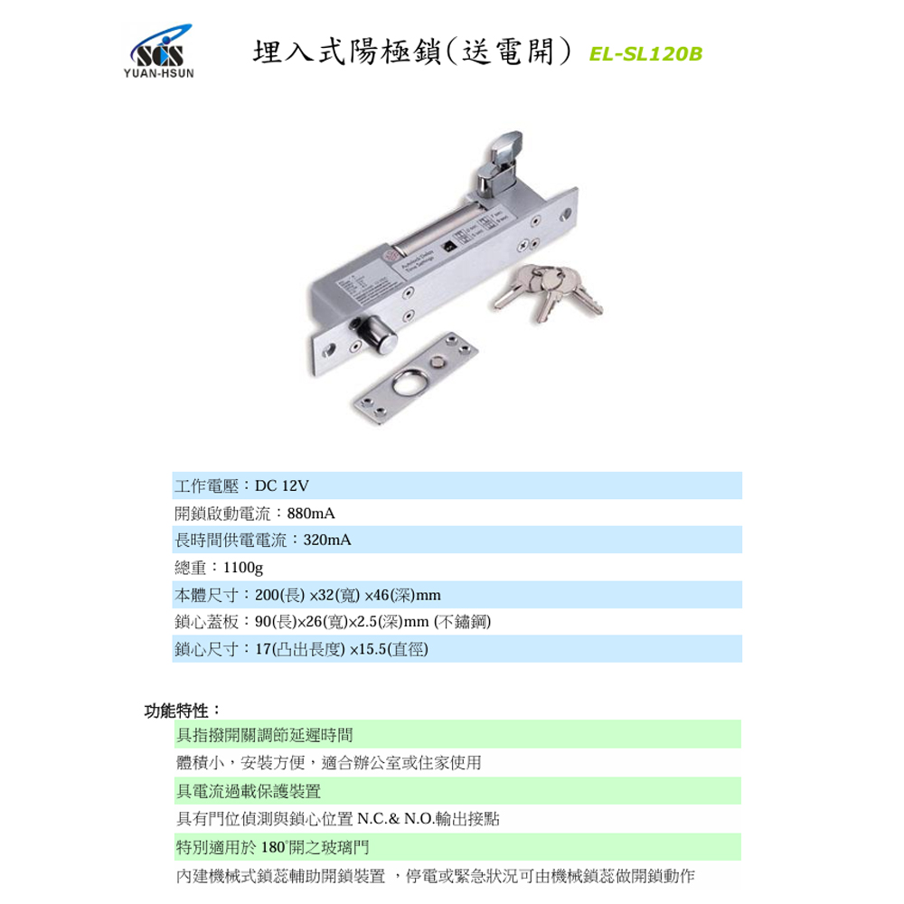 昌運監視器 SCS EL-SL120B 埋入式陽極鎖 送電開關型