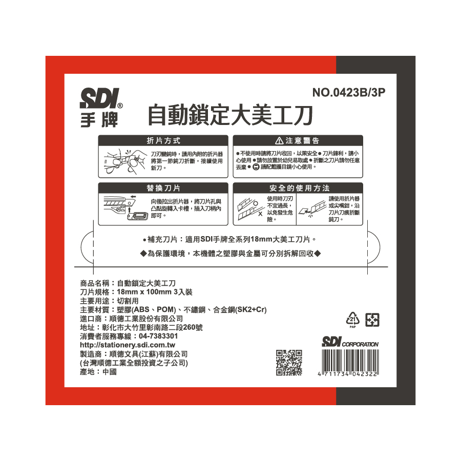 SDI自動鎖定大美工刀(3入)0423-顏色隨機出貨