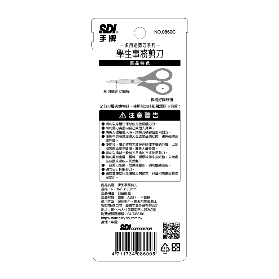 SDI學生/事務剪刀6-3/4 (顏色隨機出貨)