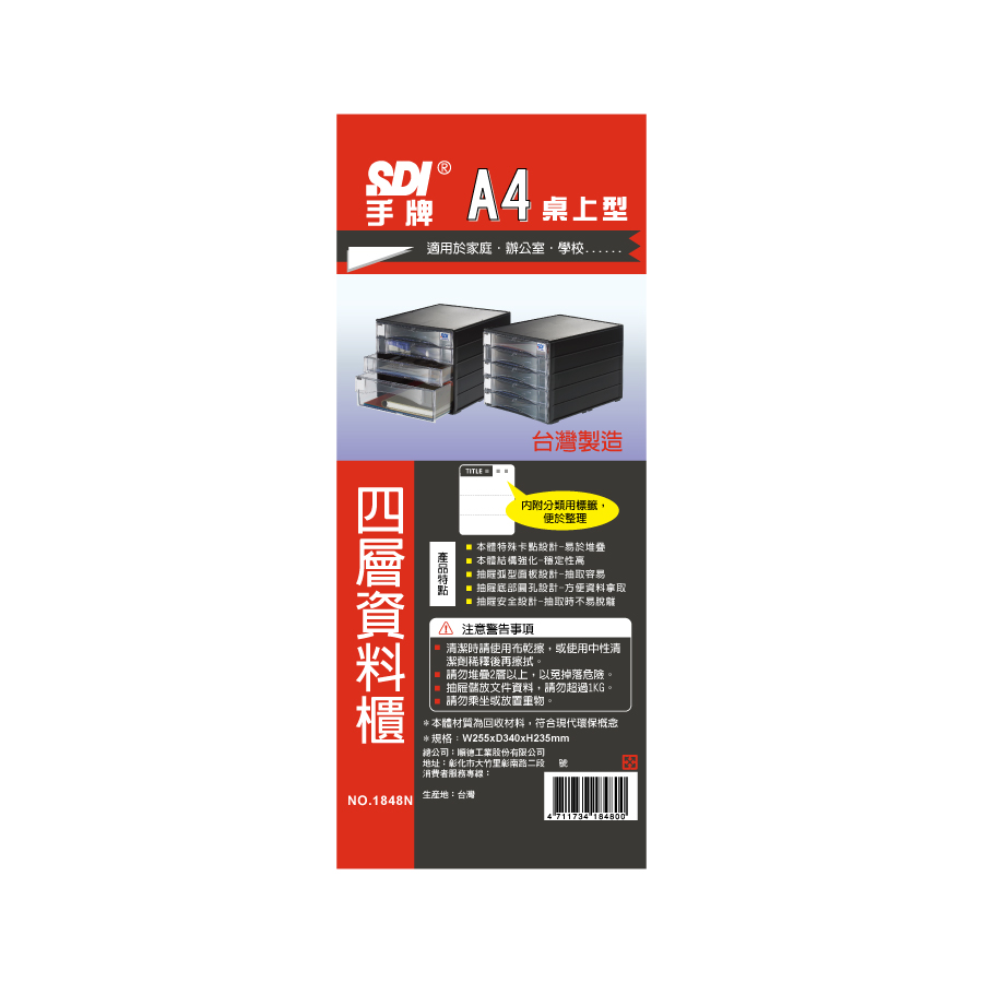 SDI A4桌上型四層資料櫃1848N