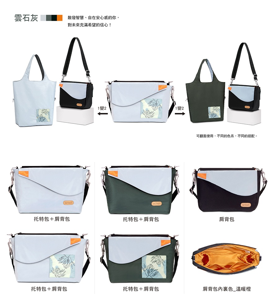 【seisei】遛遛包/斜背+托特二包合一_再生寶特瓶環保防水布/雲石灰