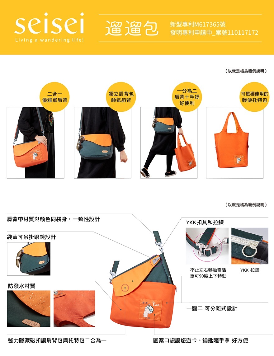 【seisei】遛遛包/斜背+托特二包合一_再生寶特瓶環保防水布/金盞橘