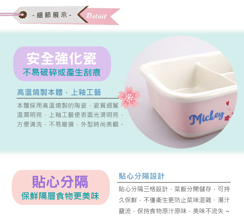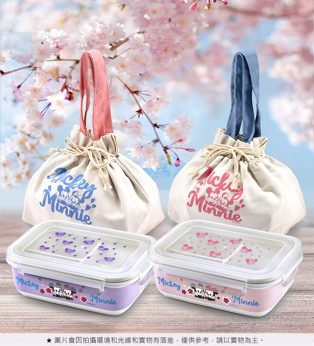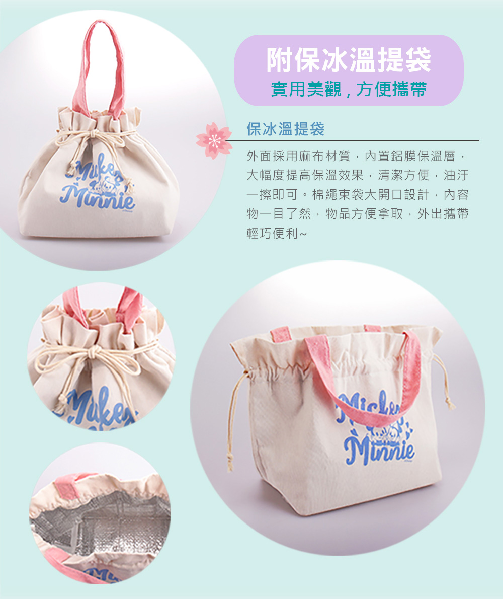 Disney 迪士尼櫻紛米奇三格密封陶瓷餐盒保溫提袋組