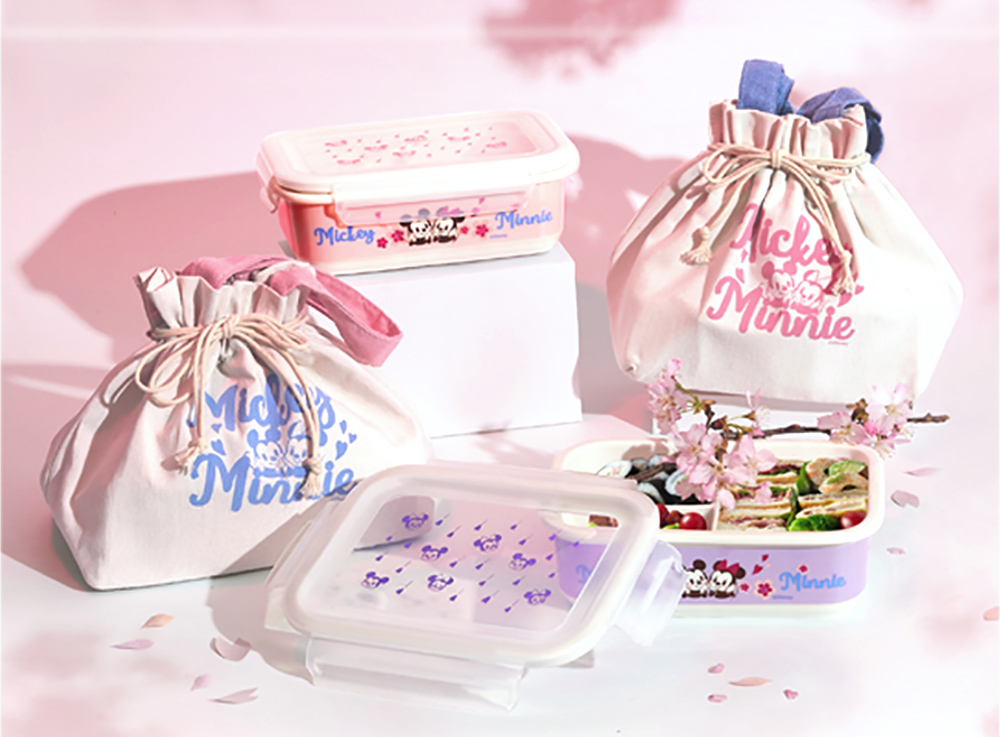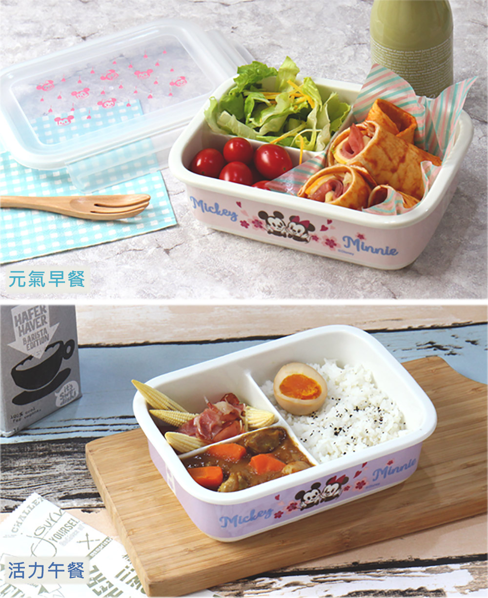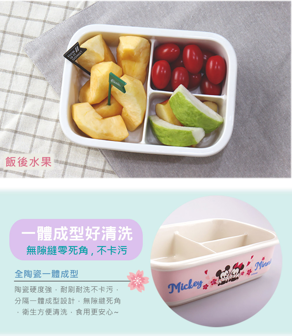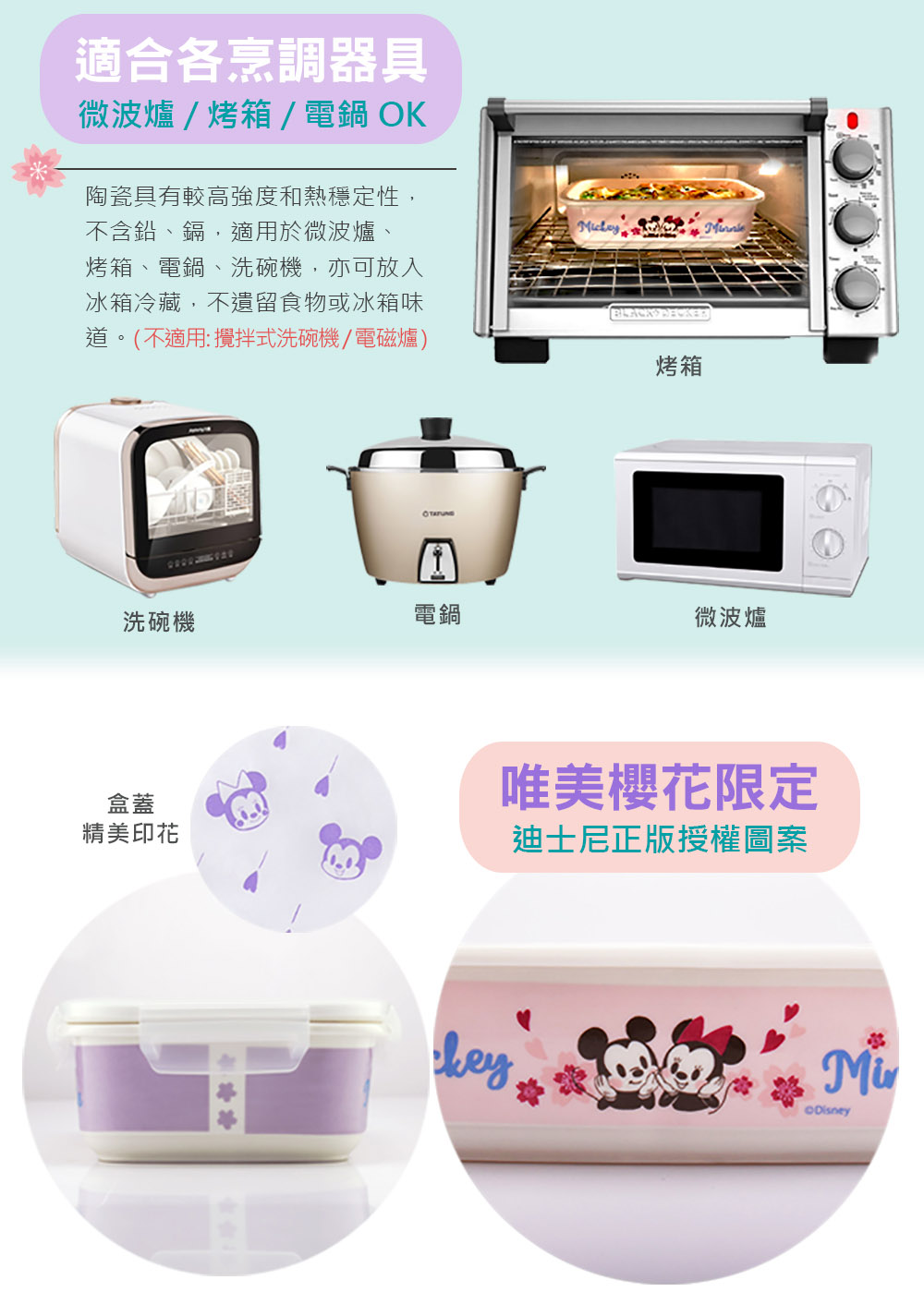 Disney 迪士尼櫻紛米奇三格密封陶瓷餐盒保溫提袋組