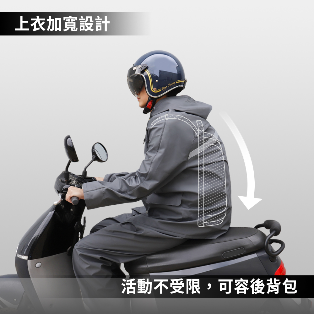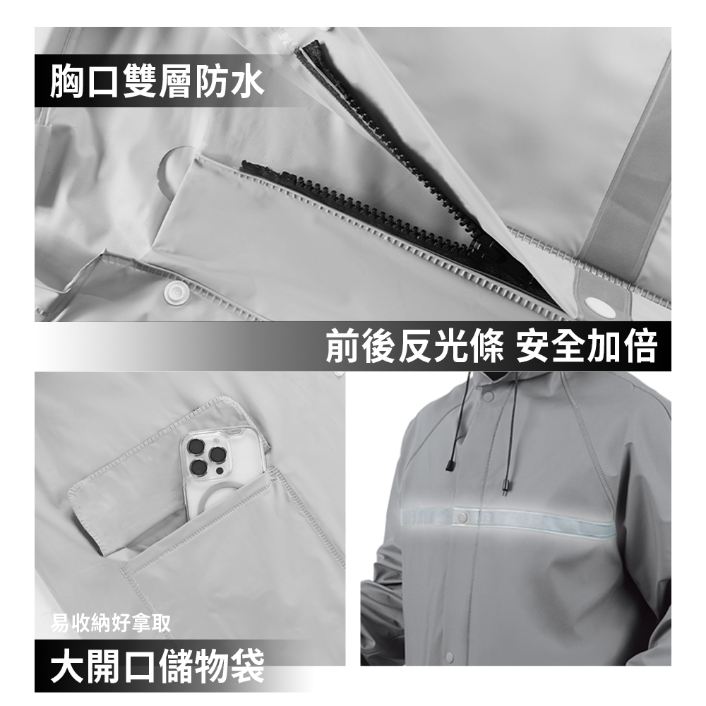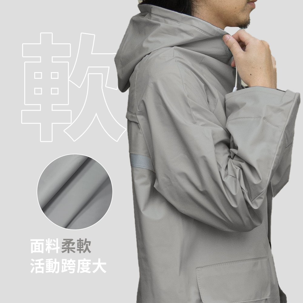輕量海膠穿著無負擔,胸口雙層防水搭配海膠高抗水特性,雨滴不易滲入。