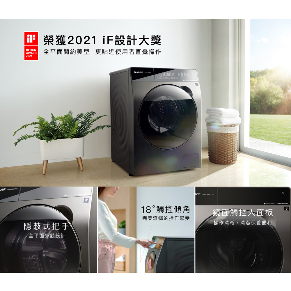SHARP夏普10.5KG Pro-Flex滾筒洗脫烘洗衣機ES-FKA105WDT