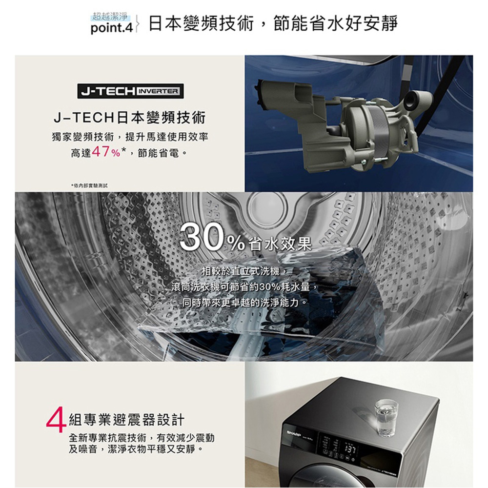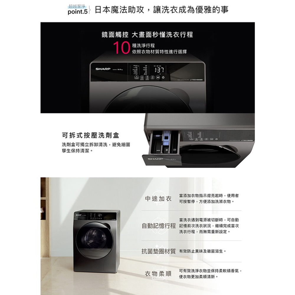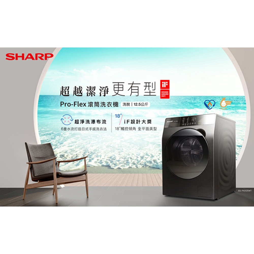 SHARP 夏普 12.5kg 滾筒洗脫 變頻 溫水 洗衣機 ES-FKS125WT