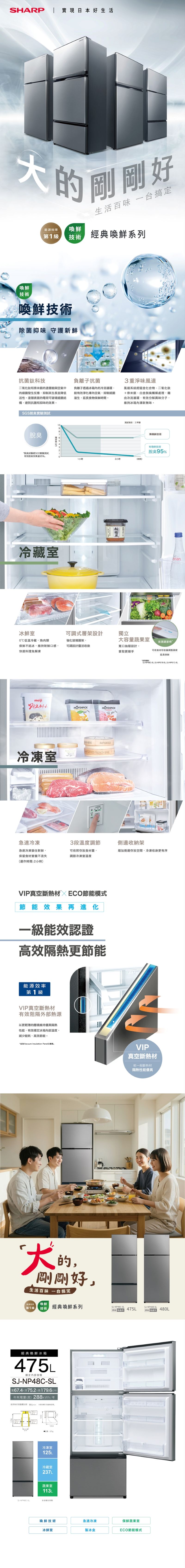 SHARP SJ-NP48C-SL三門冰箱475L