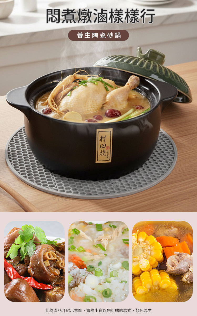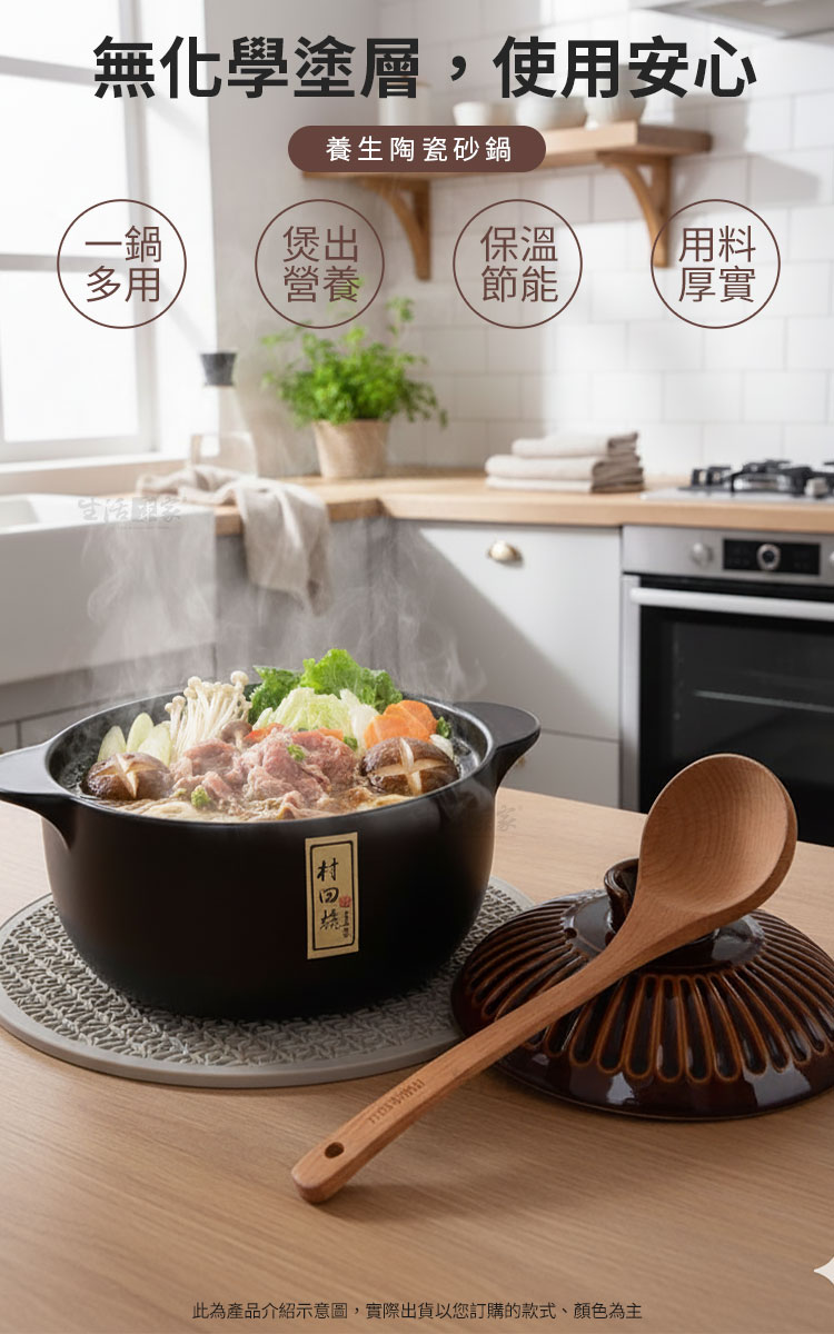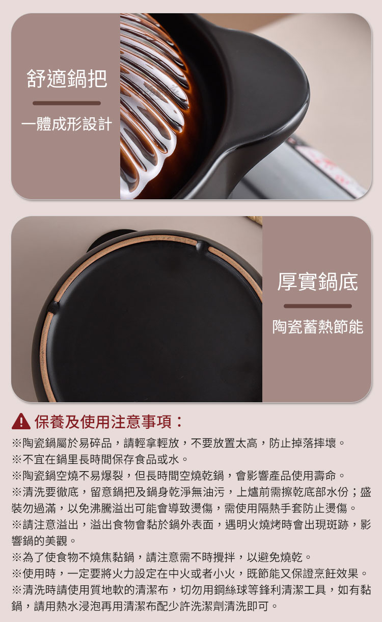 日式古銅赤耐熱陶瓷鍋5.5L|日常燉煮的最佳選擇想為家人準備一碗暖心又健康的湯品嗎?🥣這款 日式古銅赤耐熱陶瓷鍋5.5L,以原礦陶土搭配鎂輝石高溫燒製而成,傳承古法工藝,帶來現代人追求的安心烹飪體驗。✅ 厚實蓄熱設計:陶瓷鍋身能長效保溫,慢燉食材營養不流失。✅ 無化學塗層:不怕脫落與化學殘留,安心燉補更放心。✅ 大容量5.5L:一次可燉整隻雞、煮滿鍋粥,滿足家庭聚餐所需。✅ 適用多場景:熬湯、煮粥、燉補、燜煮,一鍋多用途。✅ 日式古銅赤外觀:雅緻質感,提升廚房美學與餐桌氛圍。🌿 使用後你會發現~一口好鍋,能將時間轉化成食材的精華。無論是為家人準備雞湯、周末慢煮一鍋牛肉燉湯,或是晨間煮粥暖胃,這款 日式陶瓷養生鍋 都能讓料理更入味,滋養全家。👉 想要安心燉煮 ➜ 選無塗層陶瓷鍋👉 想要大容量 ➜ 5.5L一次搞定👉 想要耐熱好清潔 ➜ 厚實陶瓷就是答案為自己與家人投資一口好鍋,讓生活多一份健康與溫暖吧!#煲湯煮粥 #養生陶鍋 #陶鍋推薦 #耐熱陶鍋 #燉湯好鍋📣 FAQ (常見問答)Q1:陶瓷鍋可以直接放瓦斯爐上嗎?A1:可以,鍋體耐高溫,適合直火加熱,但需避免突然冷熱交替。Q2:這款鍋有塗層嗎?A2:沒有任何化學塗層,完全以陶土材質製成,安心無毒。Q3:可以用來煮粥或燉補藥膳嗎?A3:非常適合,厚實鍋身能長效蓄熱,讓食材慢燉更入味。Q4:容量5.5L適合幾人使用?A4:約可供4-6人家庭使用,煮湯或燉雞都很方便。Q5:清潔需要特別注意什麼?A5:避免使用鋼刷,建議使用柔軟海綿及中性清潔劑,保持鍋面完整。注意事項:1.陶瓷鍋屬易碎品,請輕放避免摔落。2.不可長時間乾燒,需確保鍋內有水或食材。3.使用時避免瞬間冷熱交替,以免造成裂痕。4.建議使用木質或矽膠器具,避免刮傷鍋面。5.清洗後請確實晾乾,避免潮濕環境影響使用壽命。
