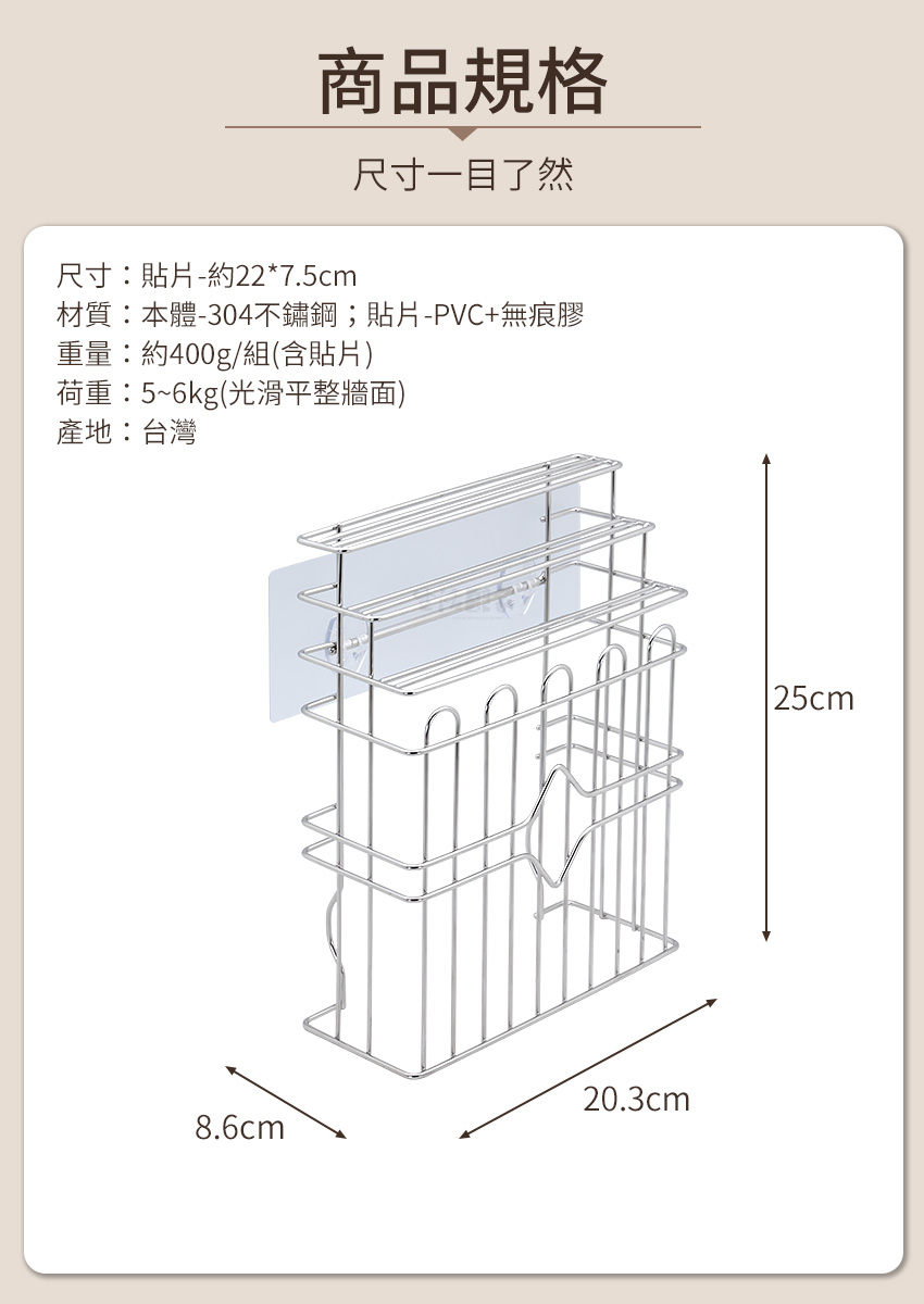 2.材質:本體-304不鏽鋼;貼片-PVC+無痕膠