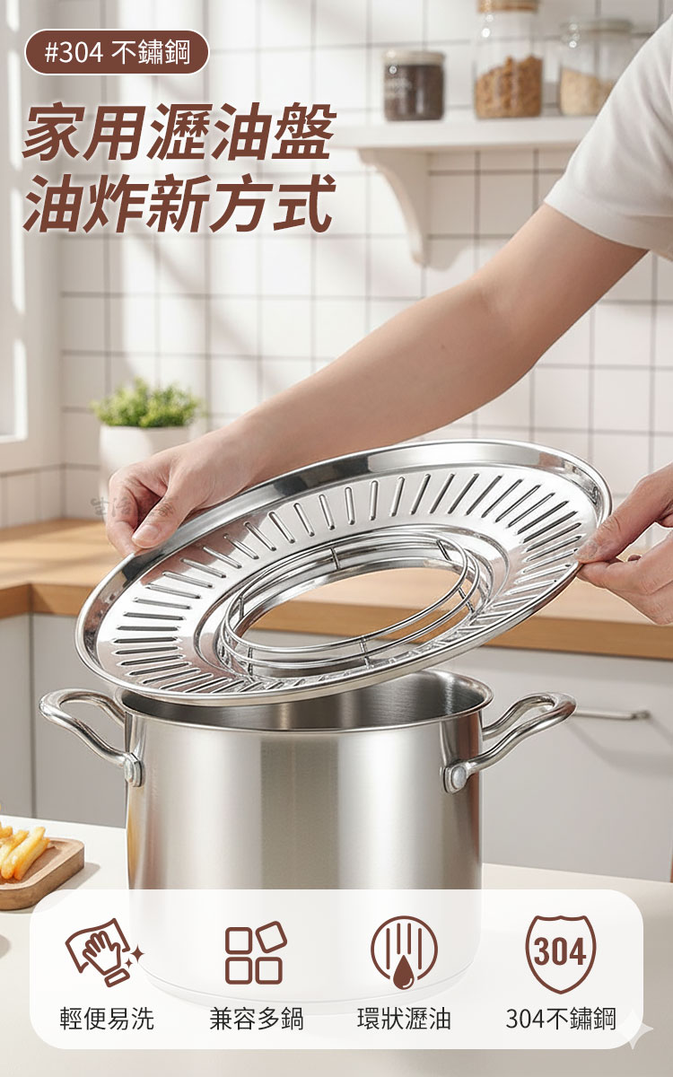 「掌控不了油炸的熱情?錯!那只是少了一個好幫手。」這款瀝油盤,不必擔心炸油滿天飛,只要將它放上鍋具,立刻變身成美味油炸鍋,即刻開炸!🔥隨時隨地擁有高水準的炸物體驗!🍤