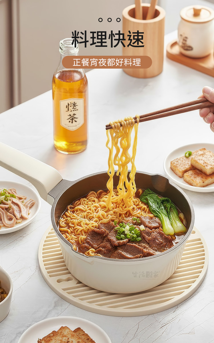 ✅ 羽量級單手操作:針對手感優化的握柄好拿好掛,貼心設計的導流嘴,湯類料理也能輕鬆傾倒,優雅不費力,但為了安全起見,移動過程中還是建議雙手端鍋。✅ 全方位相容性:瓦斯爐、電磁爐、IH 爐、黑晶爐、電爐等通通適用,不論環境如何,美味從不設限。✅極簡保養哲學 🧽:物理性不沾,料理完後只需使用清潔劑稍加清洗,汙垢瞬間消失,省下洗鍋的體力與時間。🌈 使用後你會發現...✔️ 清潔超簡單:煮完濃郁咖哩,只需海綿輕抹,髒污瞬間滑落,不再刷鍋刷到心累。✔️ 健康看得見:只需極少量的油即可烹飪,鈦晶陶瓷塗層材質不含 PFOA,給家人最安心的食安守護。✔️ 料理變快速:鈦金屬的高導熱性,讓水滾得更快,不管是下班後的湯品還是早晨的溫牛奶,效率加倍。🌟 現在,就為廚房換新氣象!別再將就於底部焦黑、塗層脫落的老舊鍋具。這不僅是一口鍋,更是你優質生活的起點。現在就帶走這口結合美感與機能的鈦陶瓷不沾湯鍋,感受指尖上的輕盈美味!#生活采家 #鈦陶瓷鍋 #不沾鍋推薦 #IH爐適用 #租屋必備 #質感生活📣 FAQ (常見問答)Q1:這款鍋子可以用在 IH 電磁爐嗎?A1:可以的。底部具備導磁層,完全支援 IH 爐、電磁爐、瓦斯爐及各式電熱爐。Q2:鈦陶瓷塗層跟一般不沾鍋有什麼不同?A:鈦陶瓷熔覆結合了航太金屬的硬度,比一般塗層更耐磨、耐腐蝕,且無毒成份更安全。Q3:可以用鐵鏟或菜瓜布清洗嗎?A3:為延長不沾壽命,建議使用矽膠鏟/木鏟,並以軟質海綿清洗,切勿使用鋼刷。Q4:20cm 的容量適合幾個人使用?A4:20cm 大小非常適合 1-2 人份的湯品、泡麵、咖哩或燉肉。Q5:手把會燙嗎?A5:握柄採用防燙隔熱材質,正常烹煮情況下單手抓握非常安全舒適。注意事項:1.請勿在無食材狀況下大火空燒,以免損壞不沾塗層。2.為避免刮傷鍋內塗層,料理時建議使用木鏟或矽膠鏟。3.烹飪後請稍待鍋體降溫後再沖冷水,避免熱脹冷縮導致塗層剝落。4.本鍋導熱極佳,建議使用中火、小火即可達到最佳導熱效果。5.不建議洗碗機,強效洗劑可能影響塗層壽命,建議手洗為主。