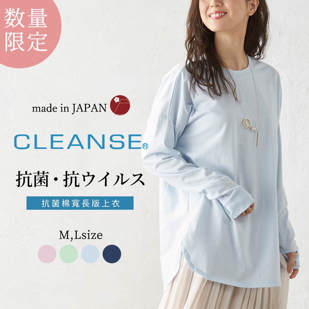 日本製【SHONAGON】抗菌棉寬長版上衣CLEANSE®是一種將固定化抗菌成分「Etak®」固定在纖維表面的技術。已證實對約 20 種纖維狀微生物(細菌、真菌和病毒)有效對新型冠狀病毒也有效!抗菌抗病毒功能纖維加工技術“Cleanze”倉敷紡織株式會社宣布,經抗菌、抗病毒功能性纖維加工技術「Cleanze」處理的紡織材料,已確認與傳統病毒一樣有效對抗「新型冠狀病毒」。已證實紡織品上的冠狀病毒已減少99%以上。即使反覆洗滌50次,效果也不下降,達到相同的效果。由於它可以防止細菌的生長,因此當您出汗或在室內烘乾衣服時,它可以抑制半乾衣服的難聞氣味。長時間保持乾淨舒適。寬鬆版型,尺寸L男士也可穿著。 (適合身高不超過170公分的男士)【材質】100%抗菌純棉【M】衣長70CM / 胸圍118 CM / 肩寬65 CM 袖長50 CM / 袖口20 CM / 下擺圍110 CM【L】衣長71 CM / 胸圍124 CM / 肩寬68 CM袖長51 CM / 袖口21 CM / 下擺圍116 CM【產地】日本SNG-13053855NM 深藍 MSNG-13053855NL LSNG-13053855PM 粉 MSNG-13053855PL LSNG-13053855GL 淺綠 LSNG-13053855NM 淺藍 MSNG-13053855NL L