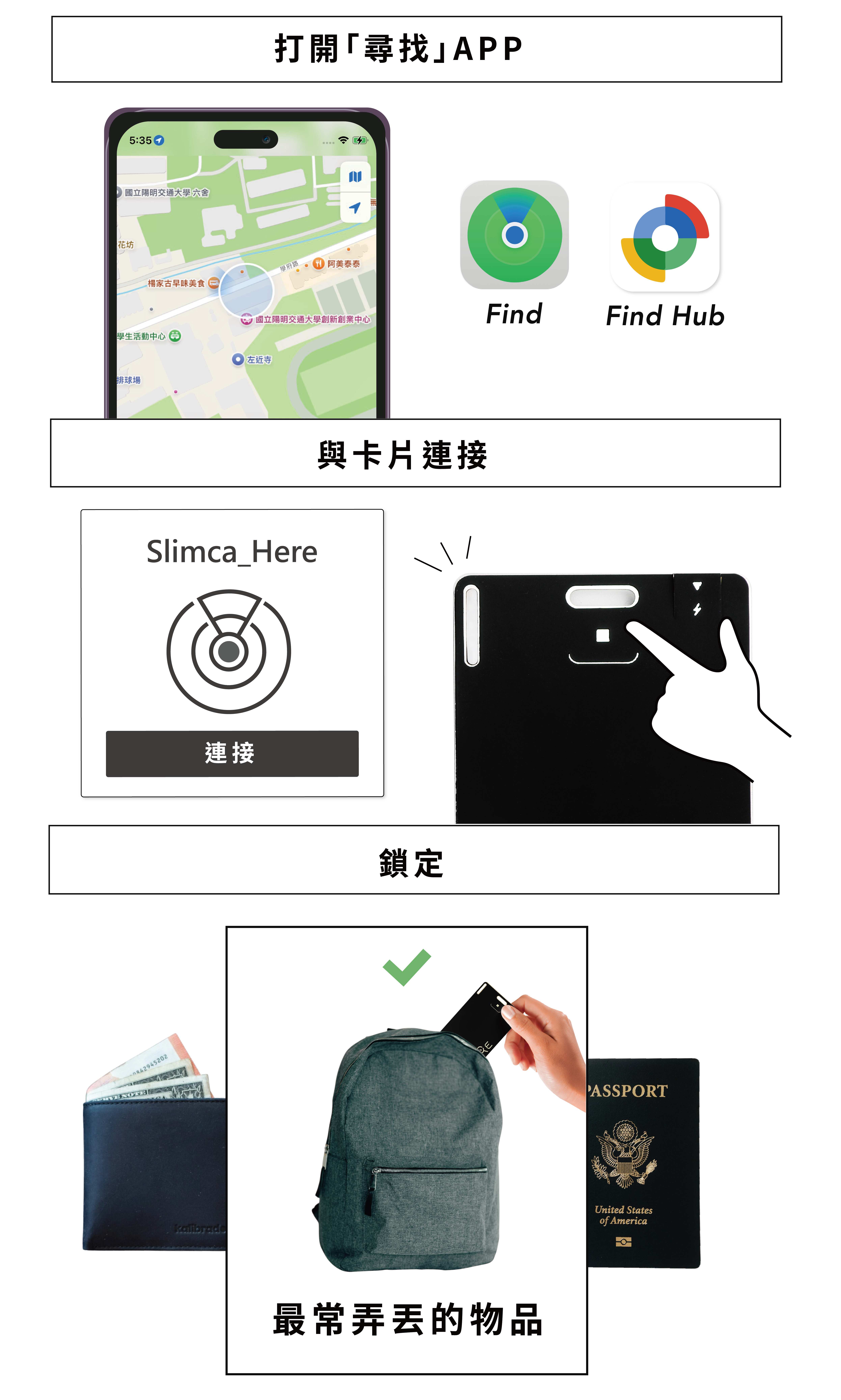 你是不是也常常把錢包放口袋,全球唯一支援15度卡片彎折輕鬆貼合你錢包的使用習慣,不用再怕防丟裝置丟背包、錢包會壓壞了!