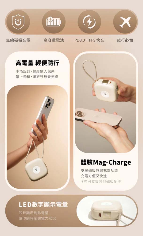 Macaron 馬卡龍 10000mAh 六合一萬用快充行動電源 無線充電 Magsafe 雙TYPE-C 自帶線