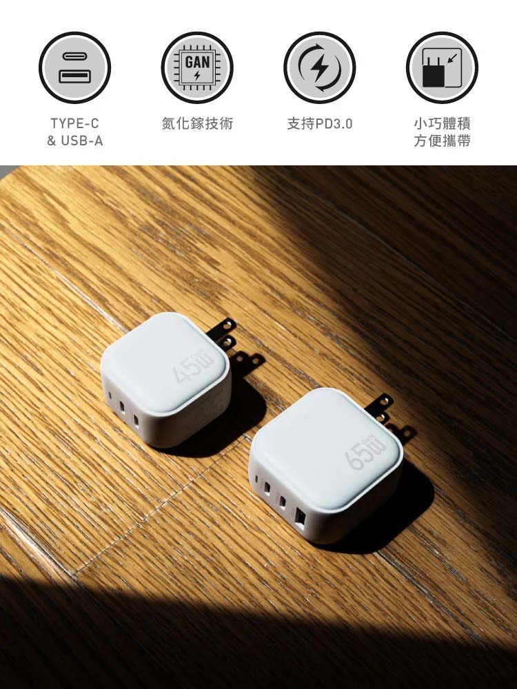 【商品特色】・採用 GaN 氮化鎵科技,體積小、功率高