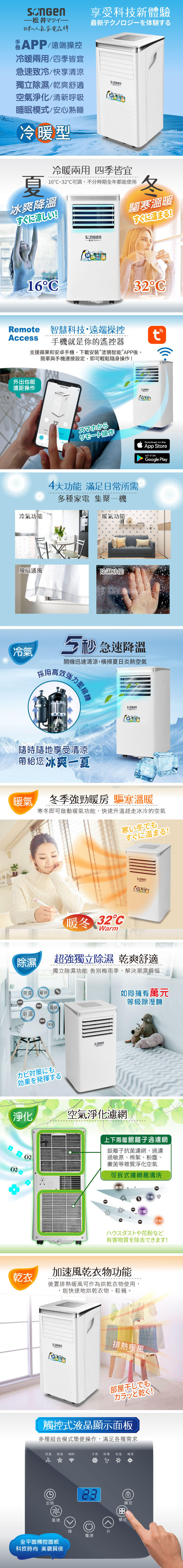 【SONGEN松井】R32手機APP智控冷暖型移動式冷氣機/空調(SG-A413CH)