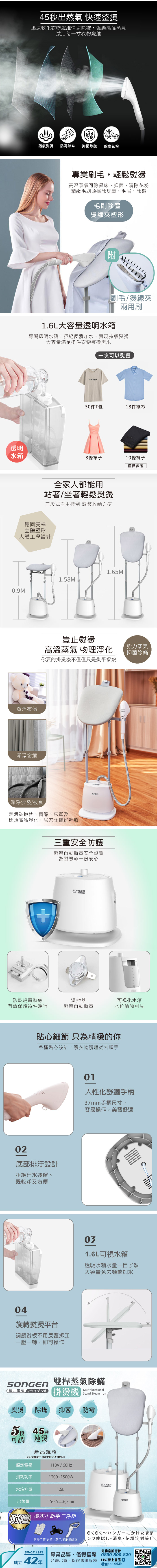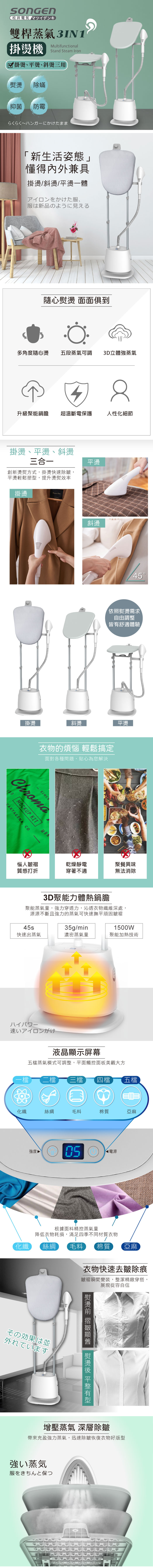 【SONGEN松井】直立式雙桿蒸氣除蟎掛燙機/電熨斗(SG-QY66E)