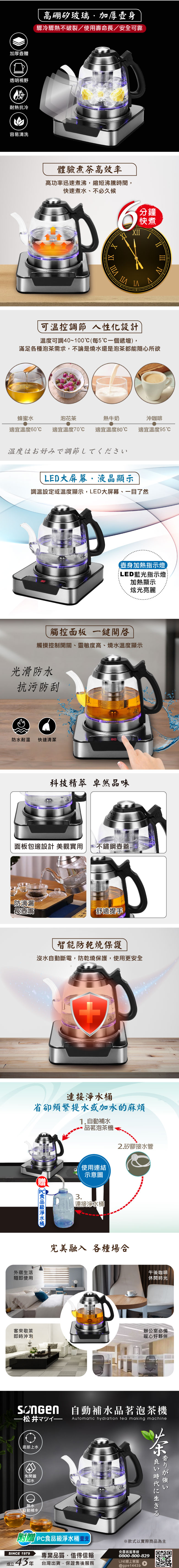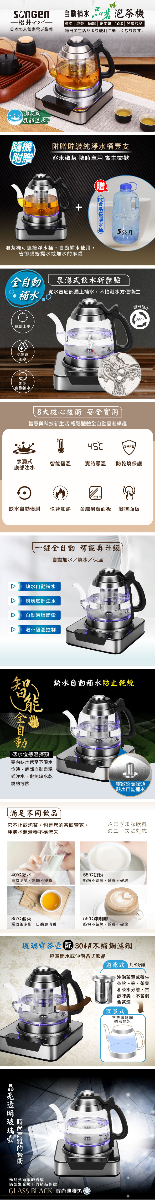 【SONGEN松井】自動補水品茗泡茶機/快煮壺(SG-T501加贈PC食品級淨水桶)
