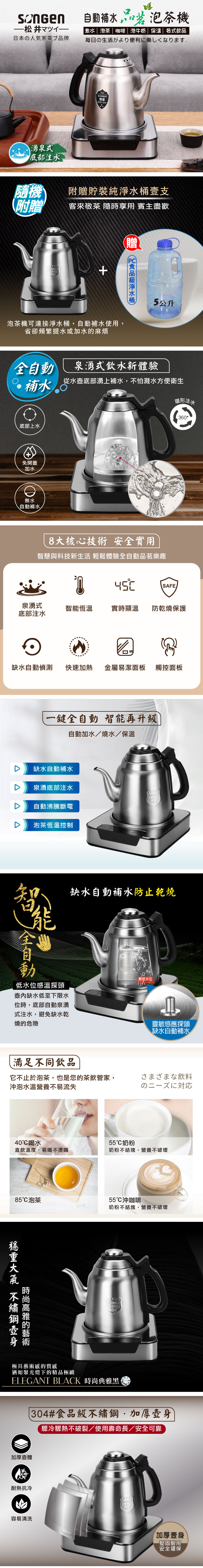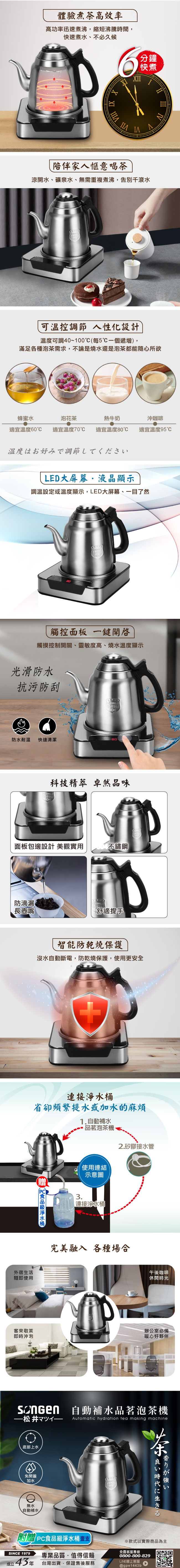 【SONGEN松井】自動補水品茗泡茶機/快煮壺(SG-T801加贈PC食品級淨水桶)