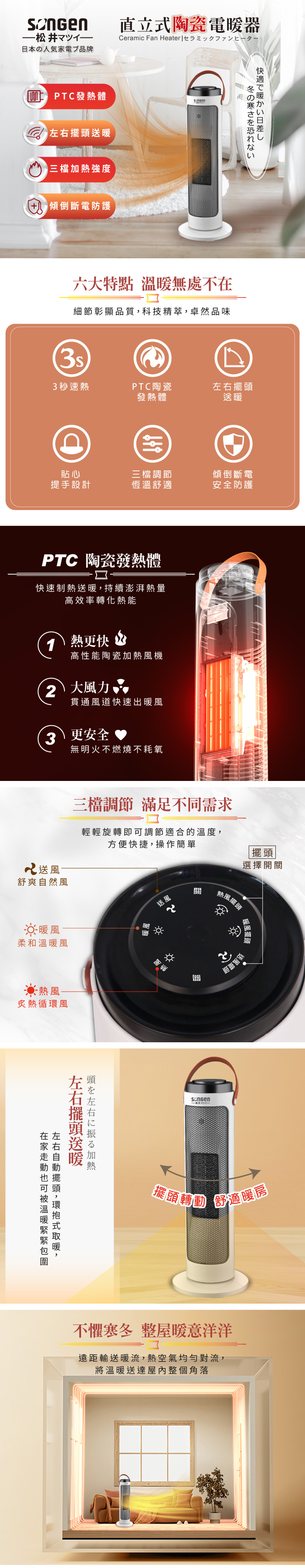 【SONGEN松井】直立式陶瓷電暖器/暖氣機/電暖爐(SG-072TC)