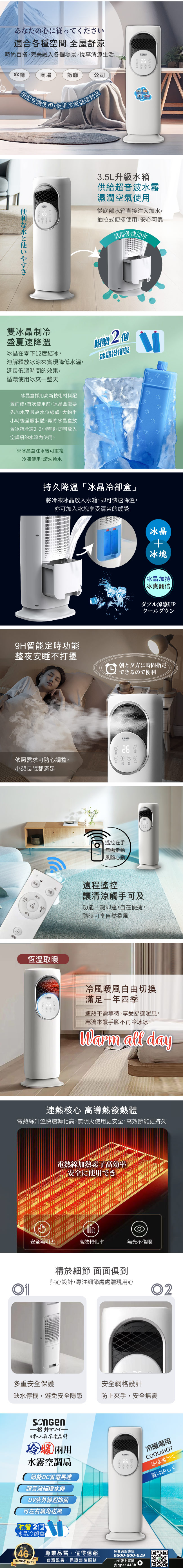 【SONGEN松井】四季冷暖兩用水霧涼風扇/水冷扇/循環扇/電暖器(SG-235ACW)