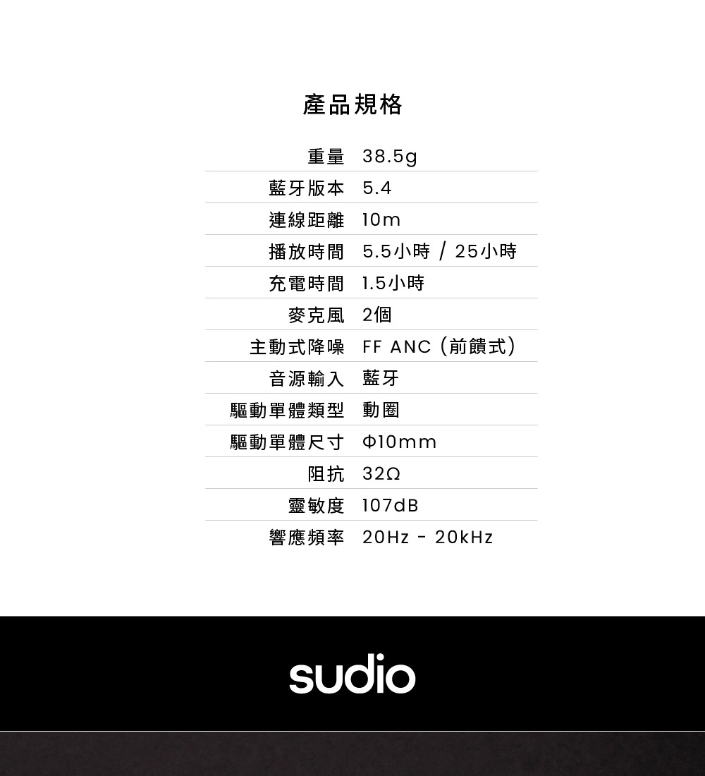 ☆商品規格︰■品牌︰瑞典■型號:SUDIO A3 Pro■保固:一年保固,到貨7日內線上登錄享共18個月保固■貨源:原廠公司貨■重量:38.5g■藍牙版本:藍牙5.4■連線距離︰10公尺■充電時間︰1.5小時■播放時間:5.5小時/25小時■麥克風︰2個■音源輸入︰藍牙■驅動單體型態:動圈■驅動單體尺寸︰10mm■阻抗:32 Ohm■靈敏度:107dB■響應頻率:20 Hz - 20 kHz■NCC認證碼:CCAF25LP1530T9■BSMI︰R38900~2028.08.13■包裝/內含配件︰A3 Pro真無線藍牙耳機、充電線、產品說明書*注意事項︰1. 此商品為影音相關之進口商品,拆封後無法以新品販售,故不做退換貨。開封後僅接受商品暇疪時之退貨或換發新品。2. 鑑賞期非試用期,若無商品暇疪要退換貨,退貨商品之包裝及內容物均須完整無破損無開封,方可申請退換貨,否則將酌收10%~30%整新費,回收之舊品將以打折之福利品再販售,不會再以新品重新販售,請客人多加注意及體諒!3. 建議客人在未確定品牌、款式型號、顏色、尺寸前,請先至實體店看實機並試聽,避免買賣雙方困擾。4. 產品顏色會因網頁呈現而有些許差異,以收到實品為準 。