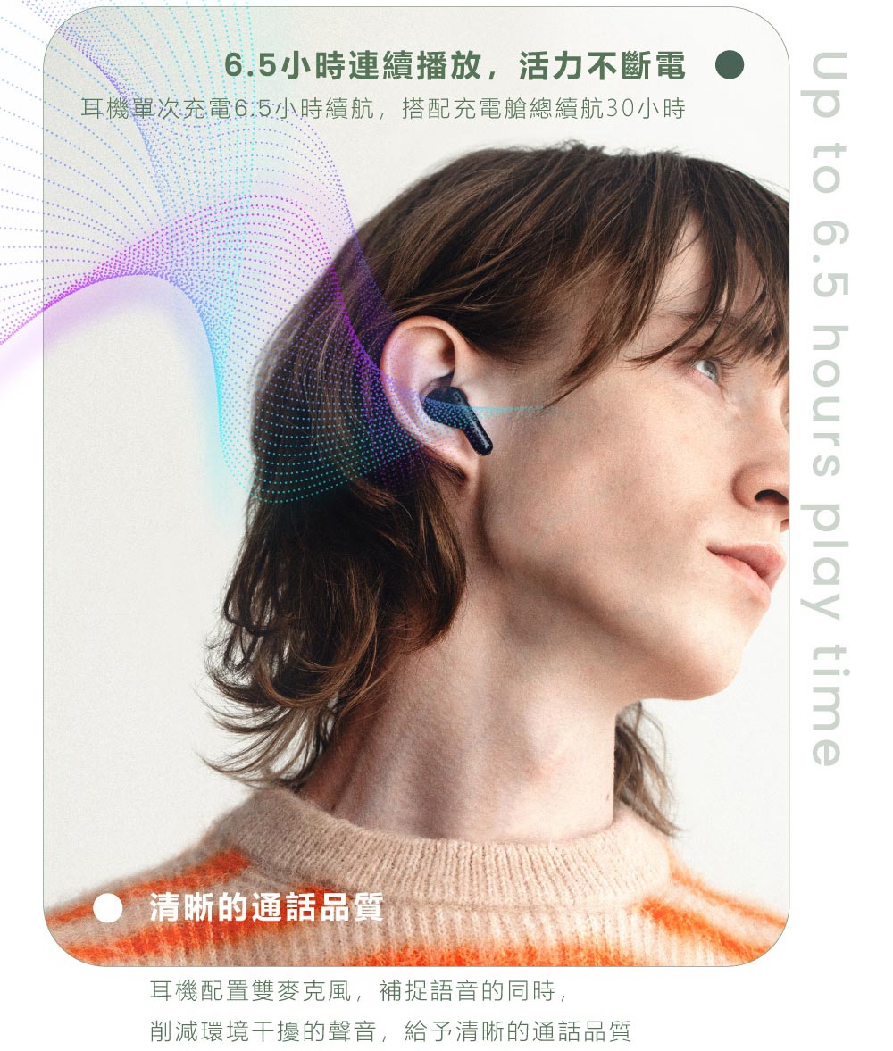 ■播放時間:6.5小時/搭配充電艙30小時總播放時間